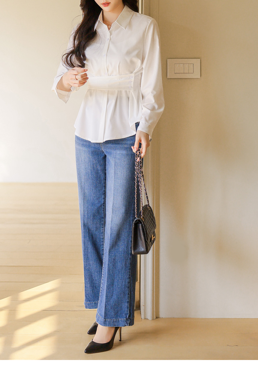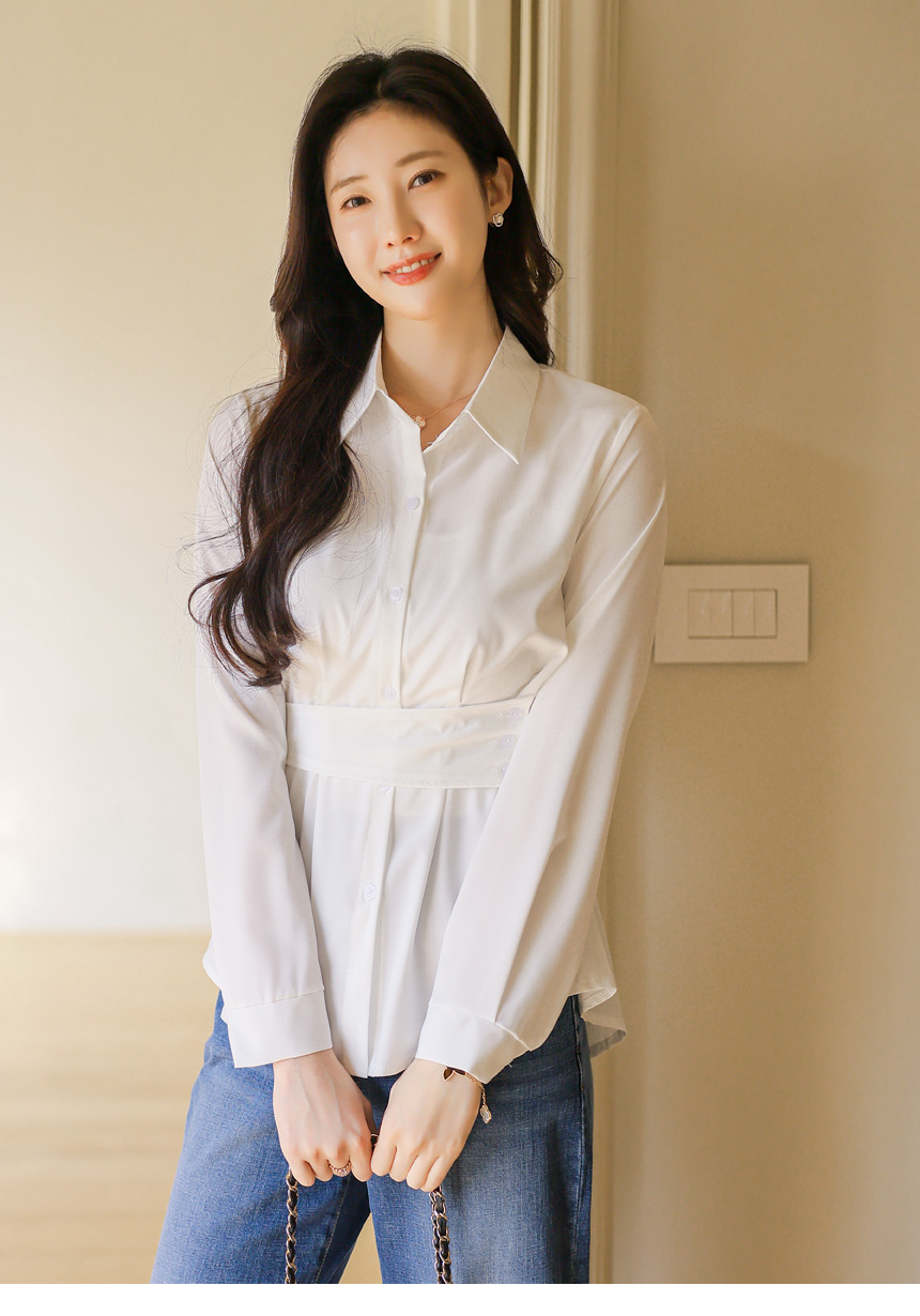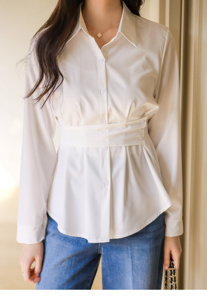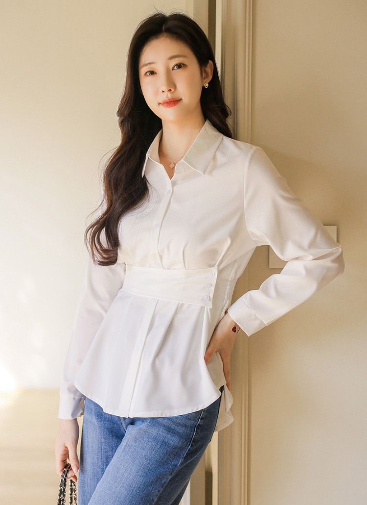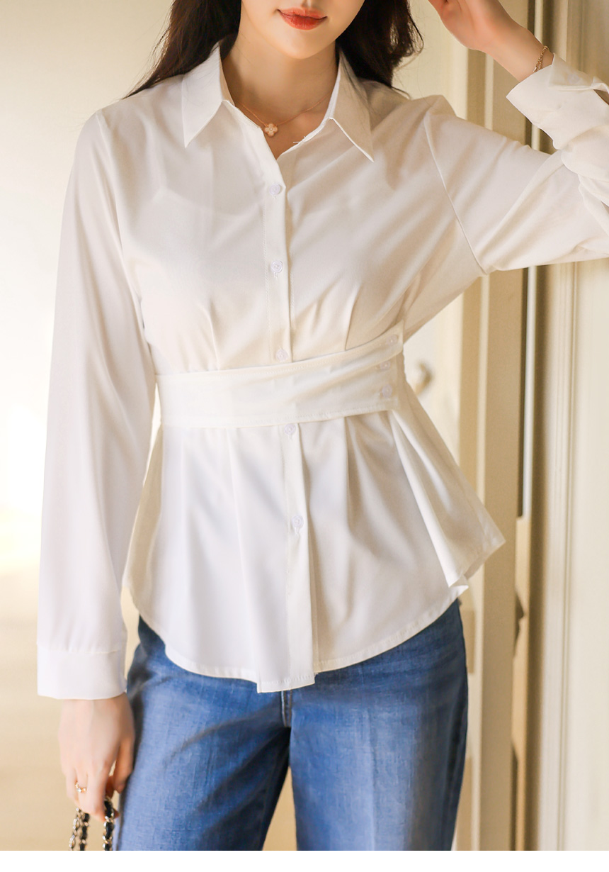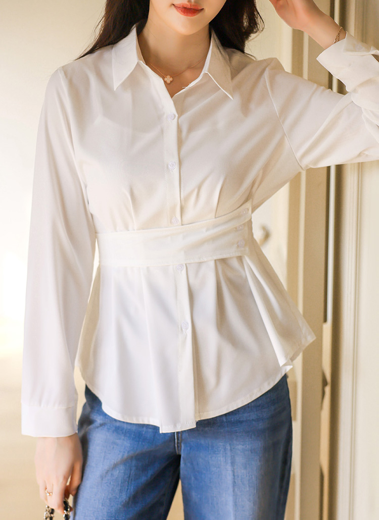 Elegant Waist Strap Peplum Shirt