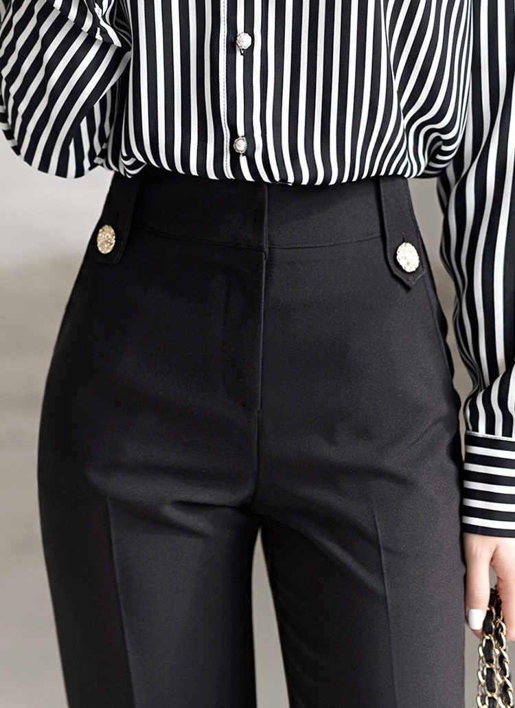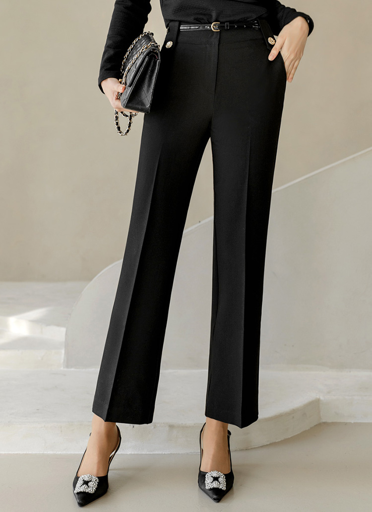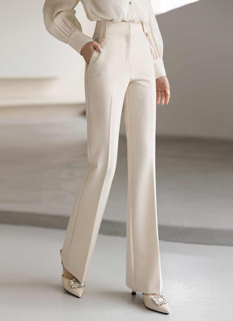 세미부츠컷이 깔끔하게 연출해주며 비조버튼으로 고급스러움이 느껴지는 슬랙스