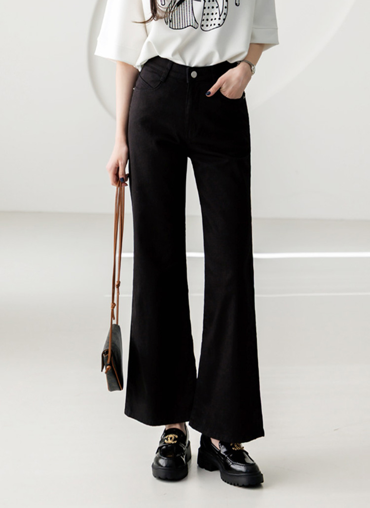 다리 라인을 더욱 곧고 매끄럽게 표현해주는 세미 부츠컷 면 팬츠에요