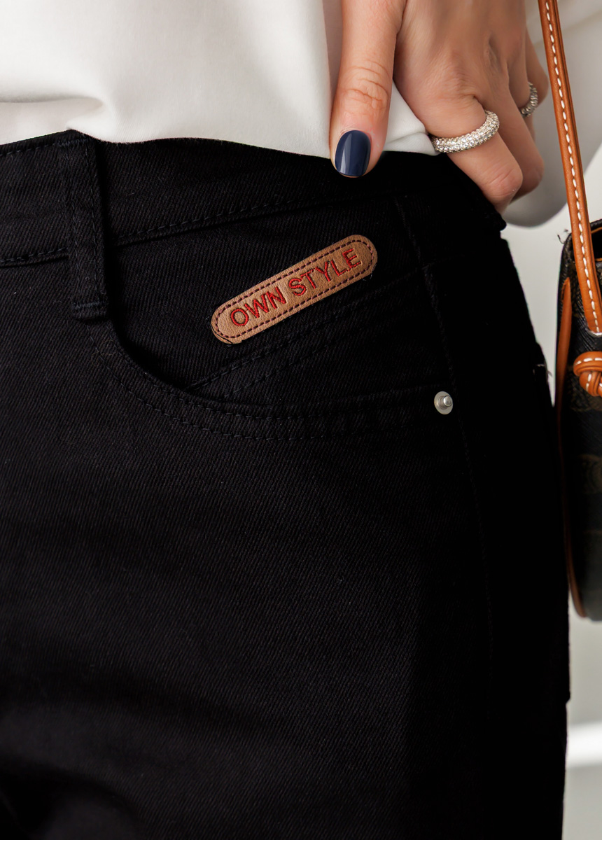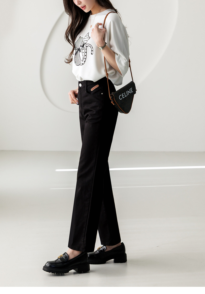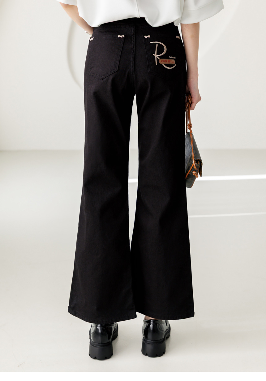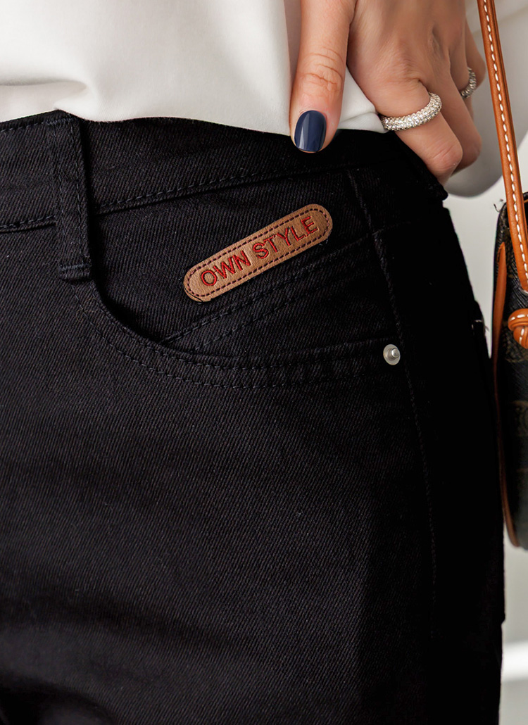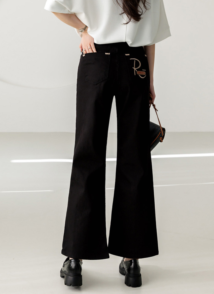 과하게 타이트하지 않고 살짝 여유감 있게 떨어지는 세미 부츠컷 실루엣으로