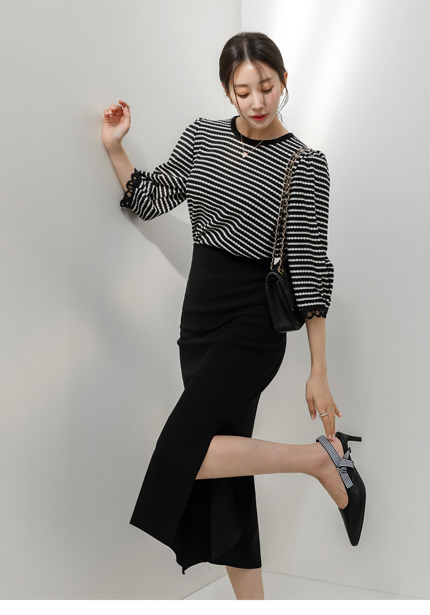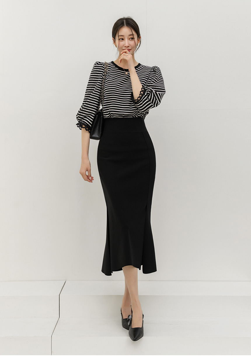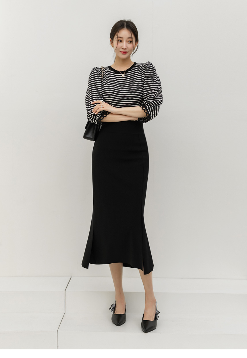 • Unbalanced Side Long Slit Mermaid Fit Skirt