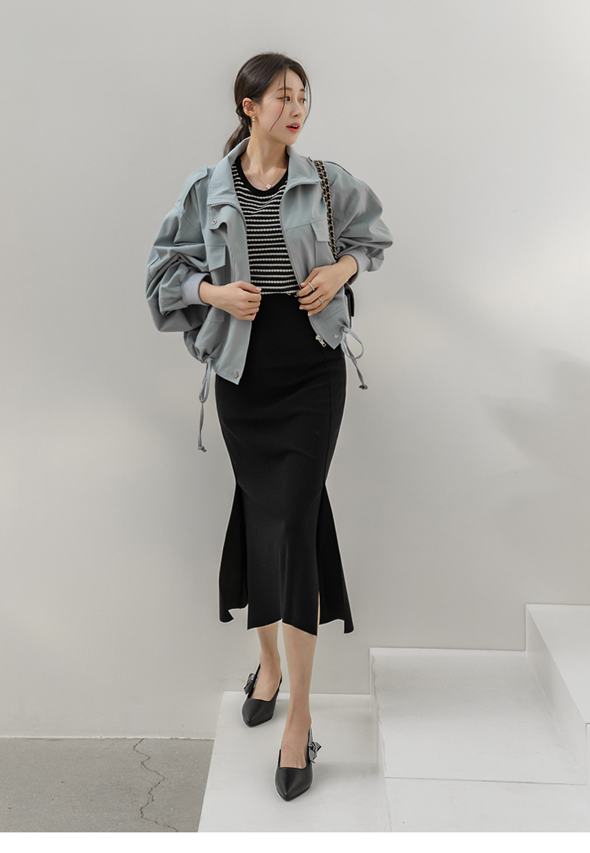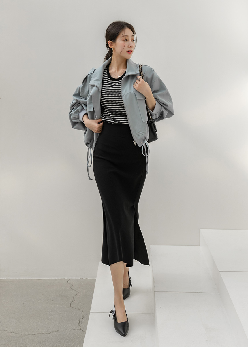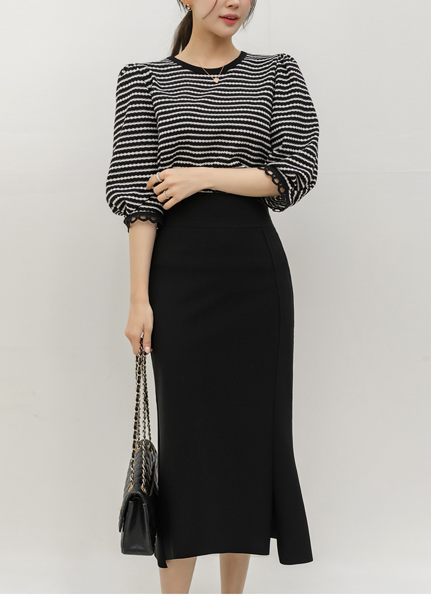 • Unbalanced Side Long Slit Mermaid Fit Skirt