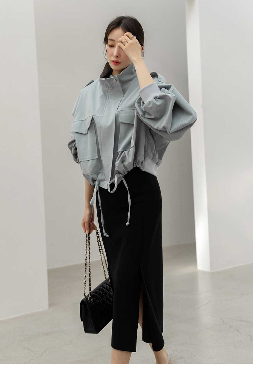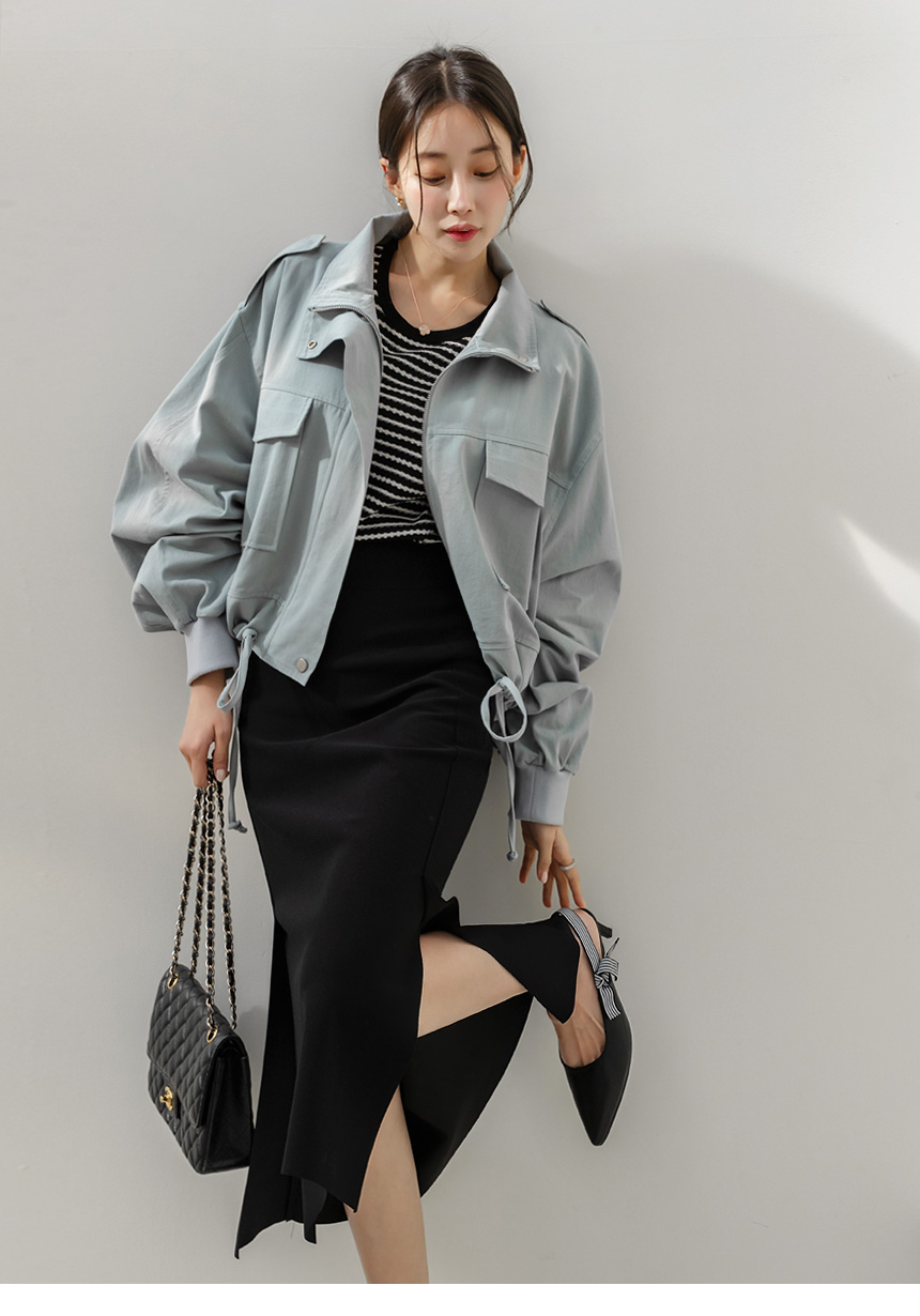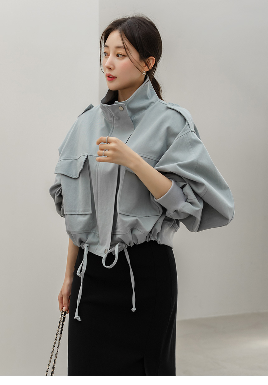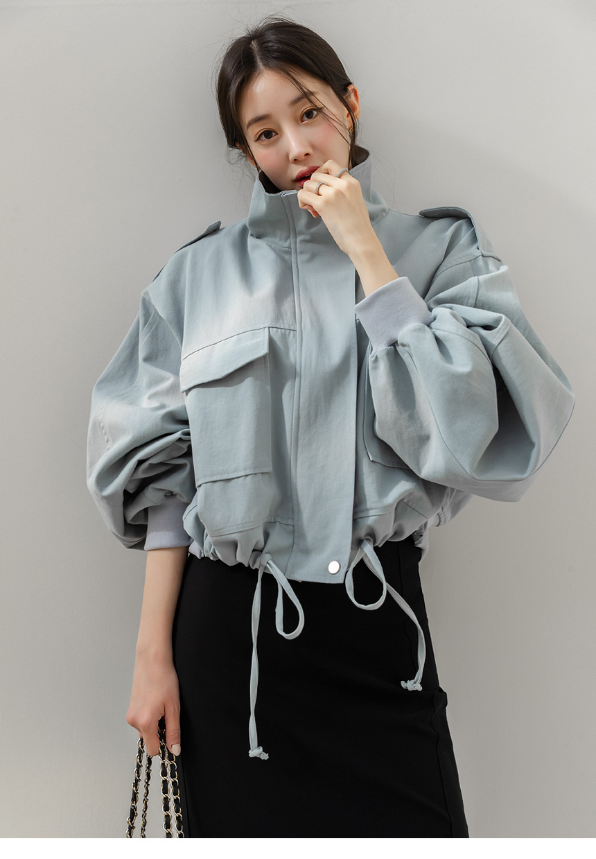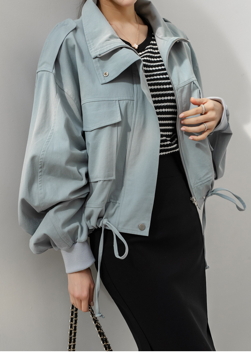 • Balloon Sleeve Drawstring Cropped Utility Jacket