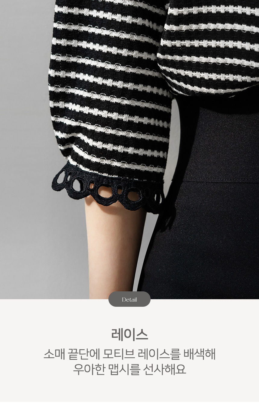 소매 밑단에는 펀칭 레이스를 배색해 시원시원한 느낌과 함께