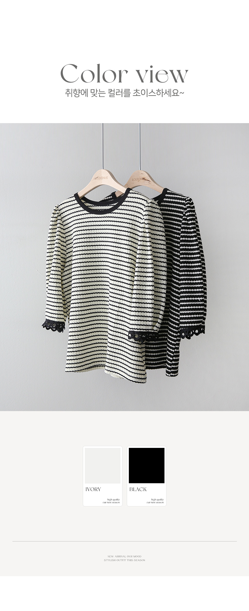 은은하게 고급스러운 분위기를 전해주는 쟈가드 스트라이프 7부 소매 티셔츠에요