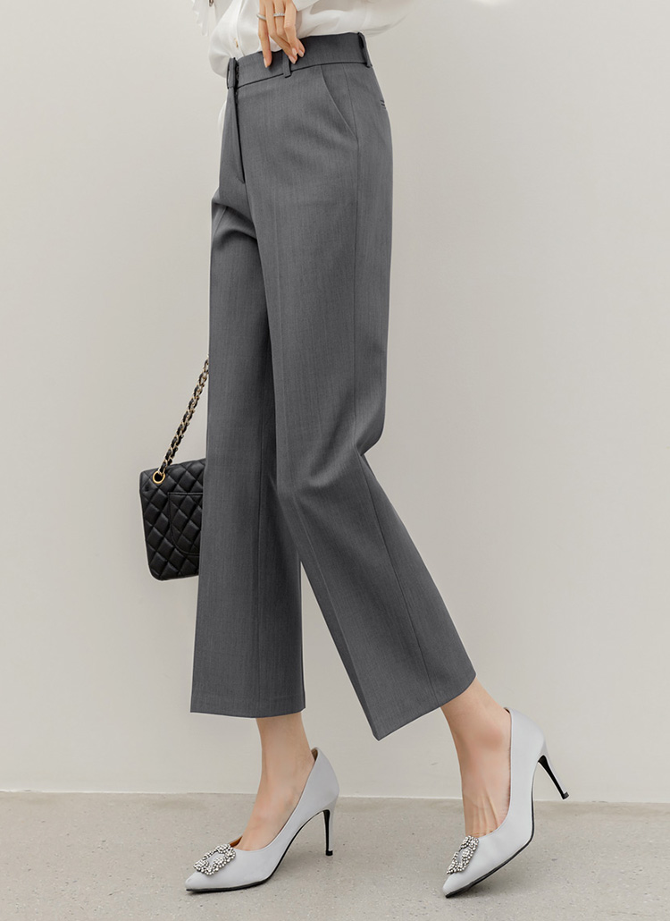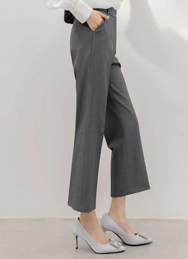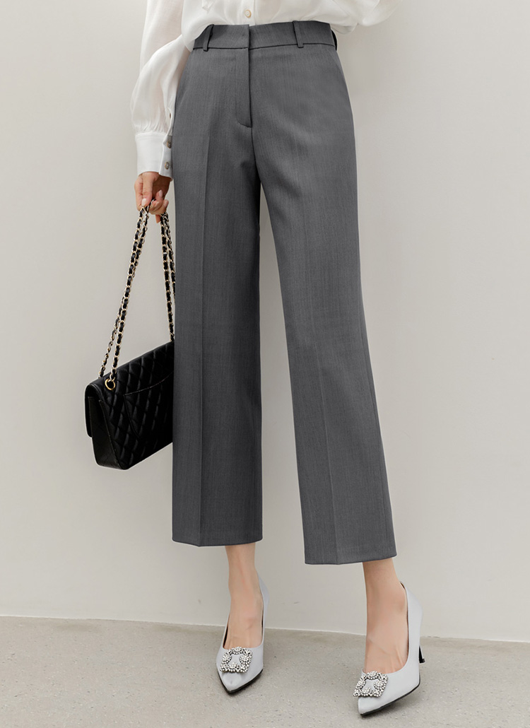 [Clean-cut straight fit slacks with an ankle-length silhouette, offering soft stretch comfort, fluid drape, and a polished look ideal for office wear and refined everyday styling.]