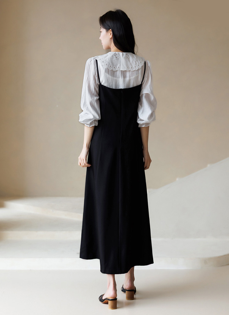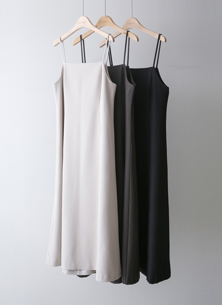 얇은 어깨 끈 디테일이 쇄골과 어깨 라인을 더욱 여리하게 강조해주며