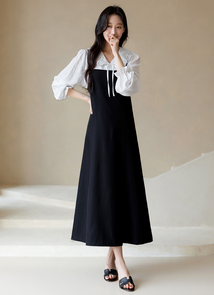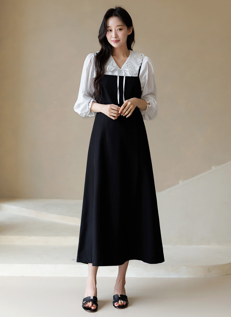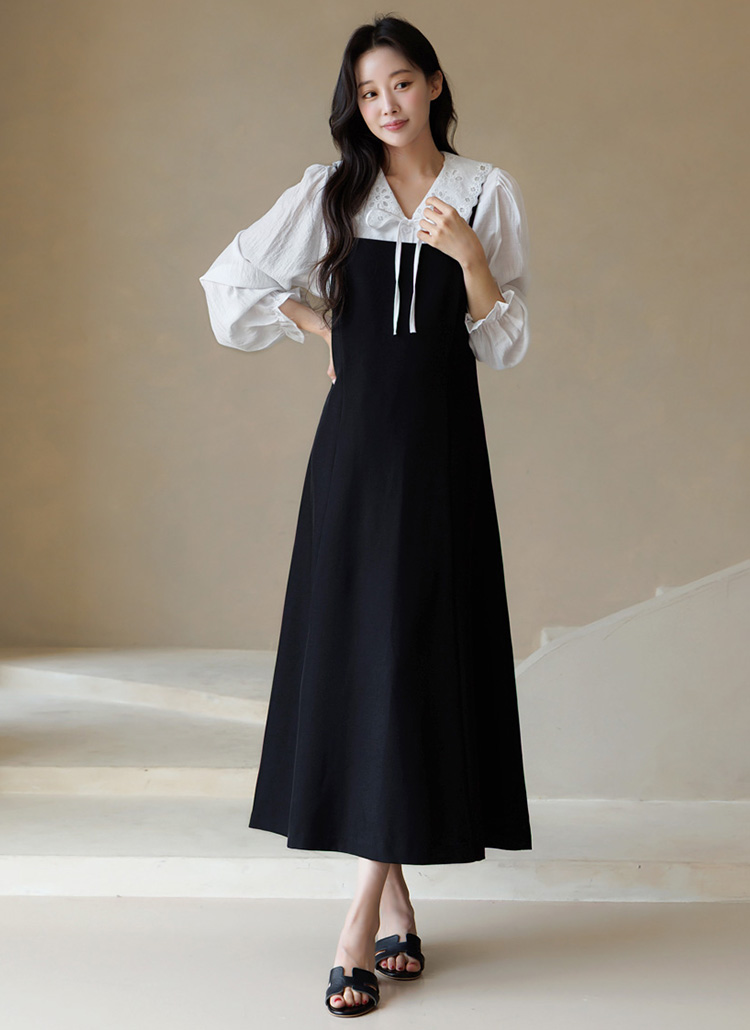 [Theonme] 아리안 벨트SET A라인 뷔스티에 끈 롱 원피스