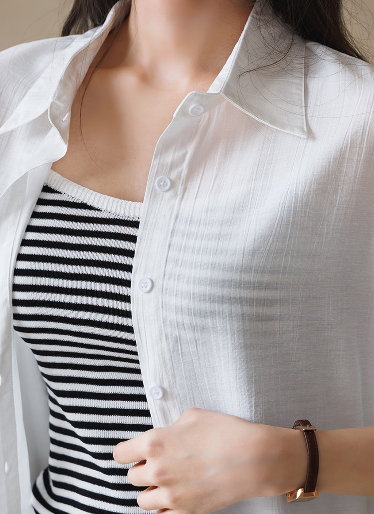 [Theonme] 네일리 스트라이프 나시 요루 거즈면 셔츠 남방 투피스 세트