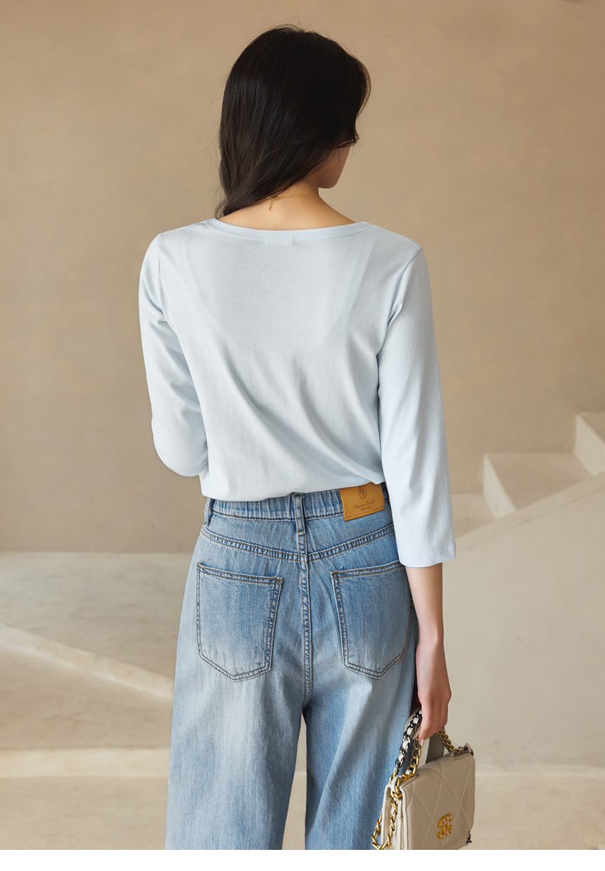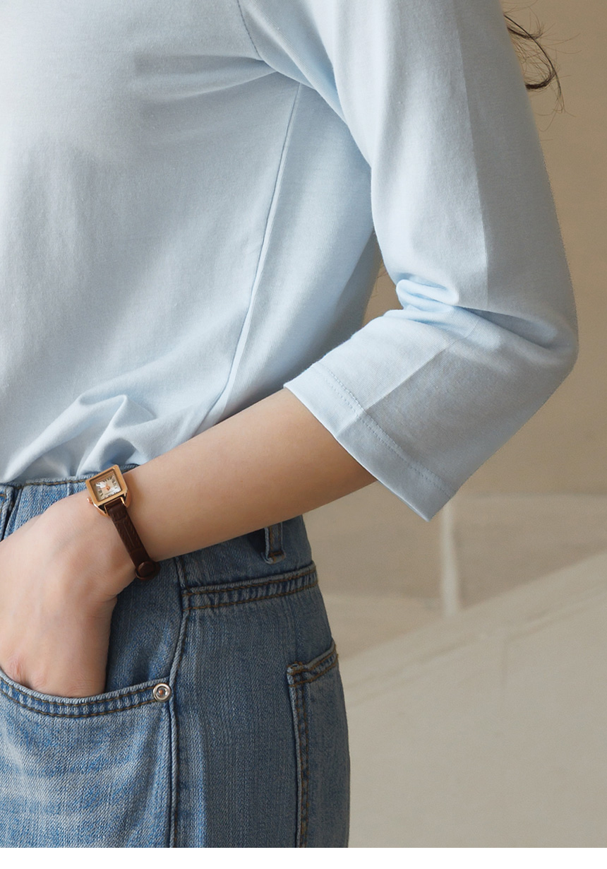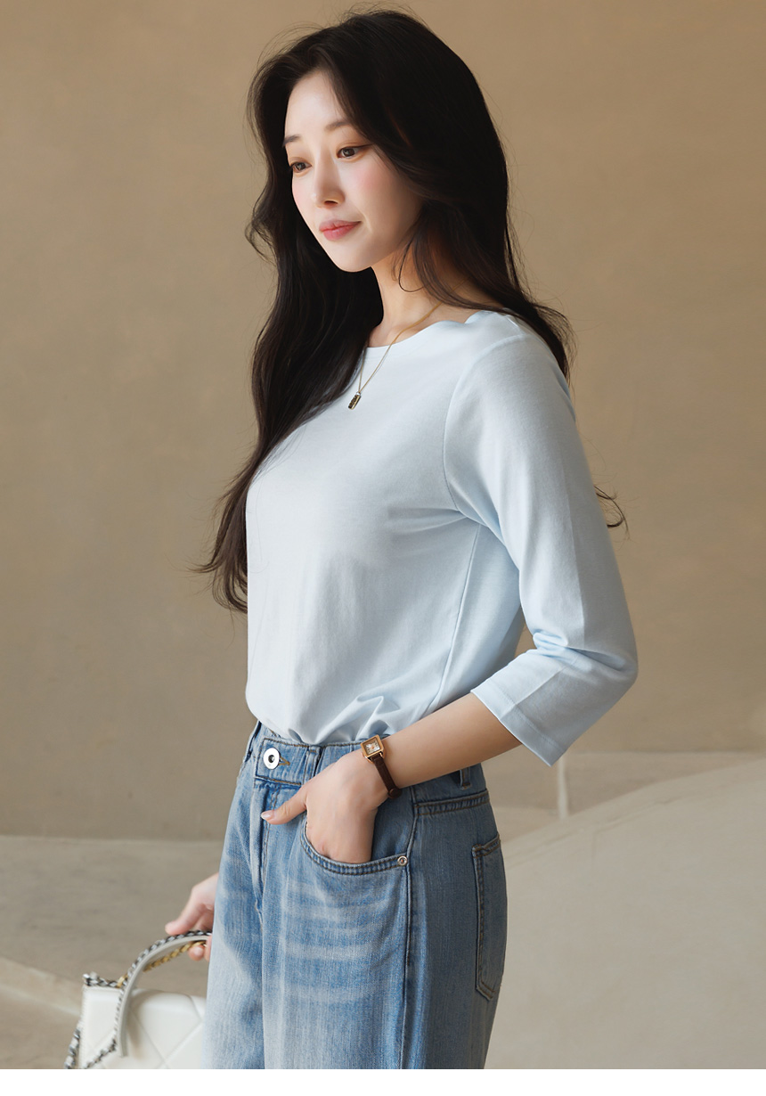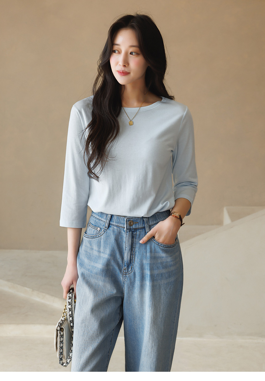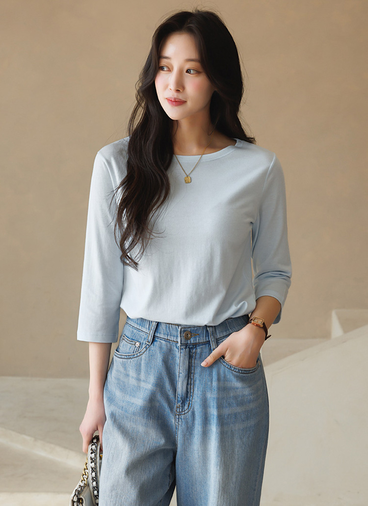 [Theonme] 에인지 부드러운 모달 블렌딩 7부 소매 라운드 티셔츠