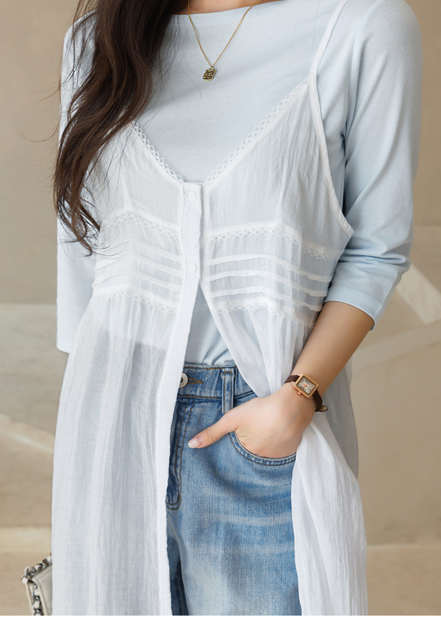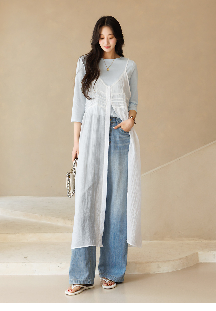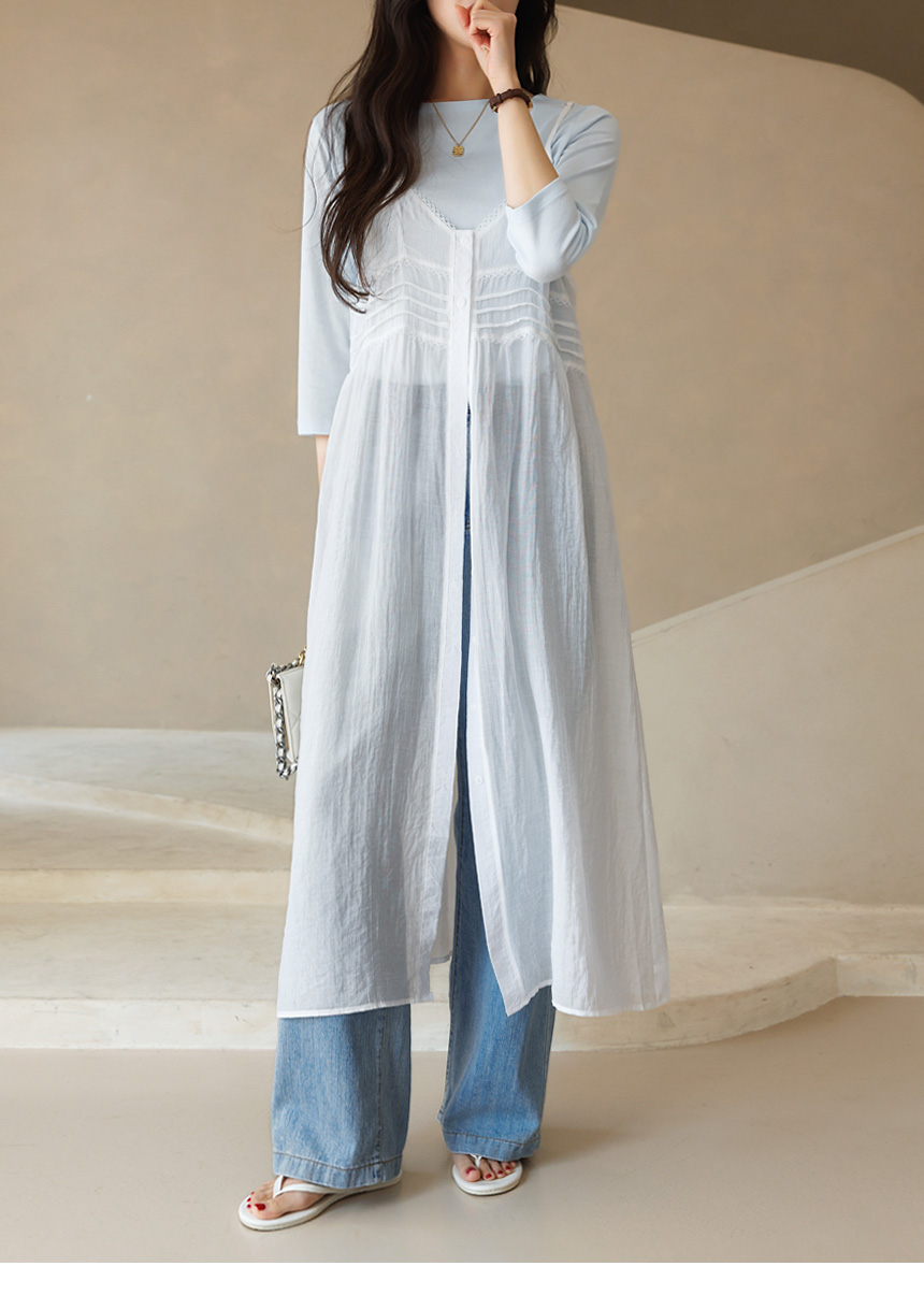 은은하게 비침이 느껴지는 얇고 가벼운 두께감으로