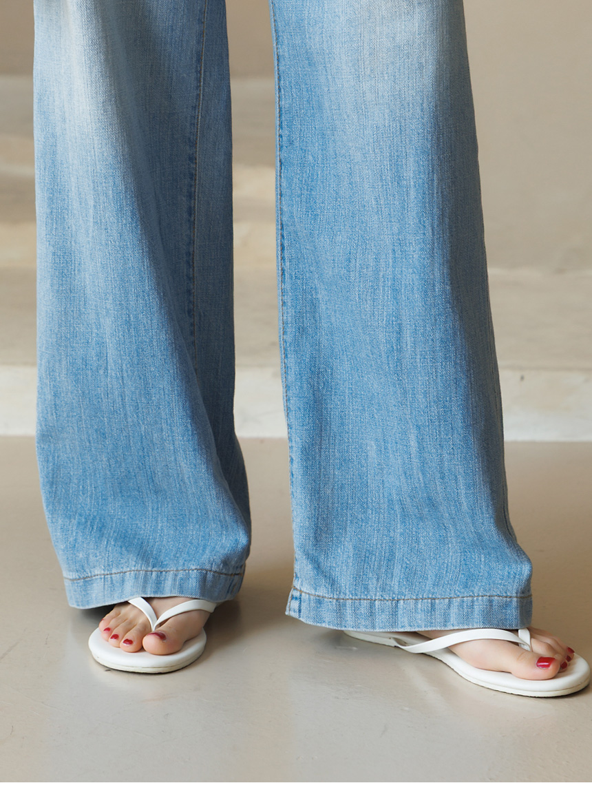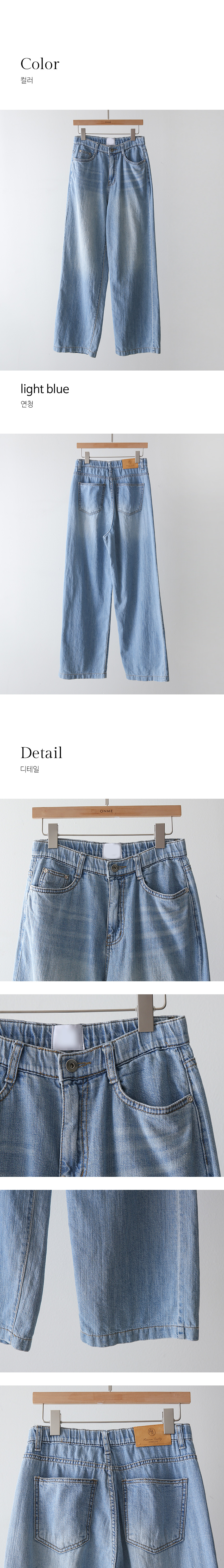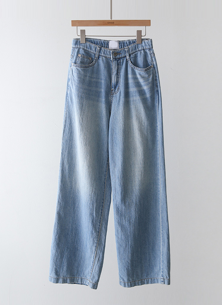 [Theonme] 파인브 쿨블루 히든밴딩 세미 와이드 연청 데님 팬츠