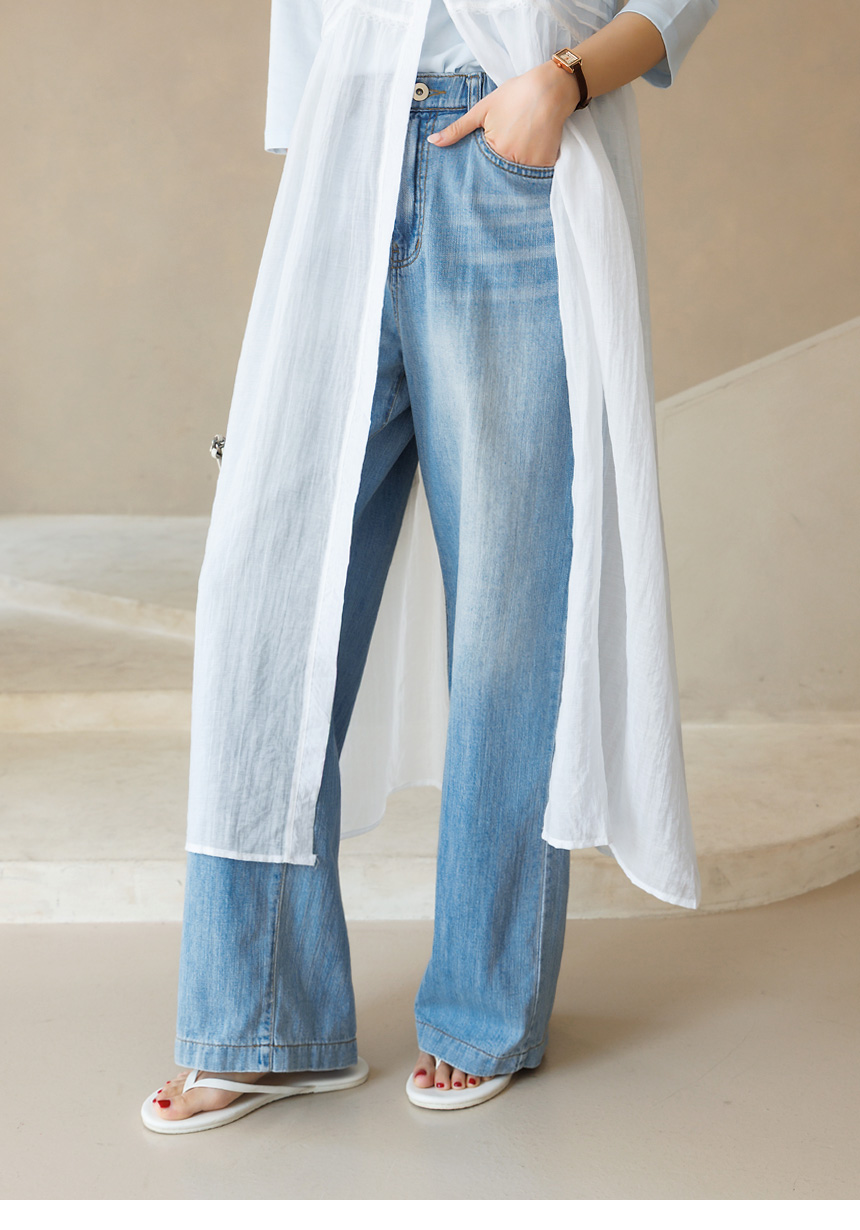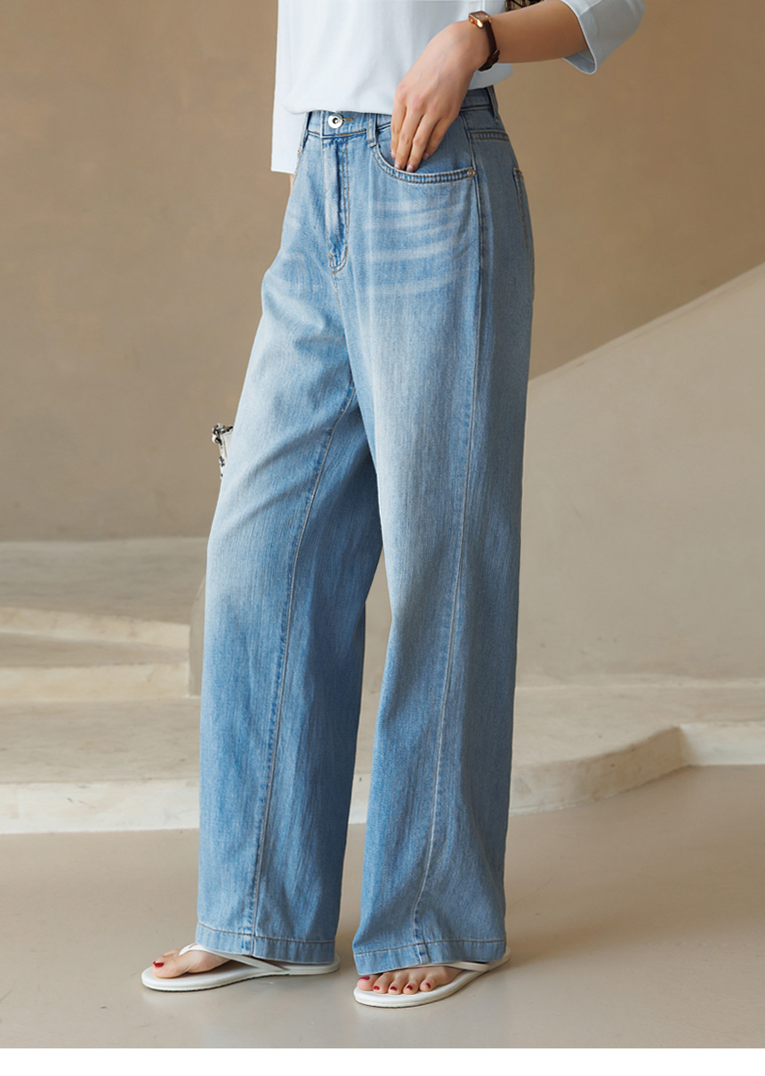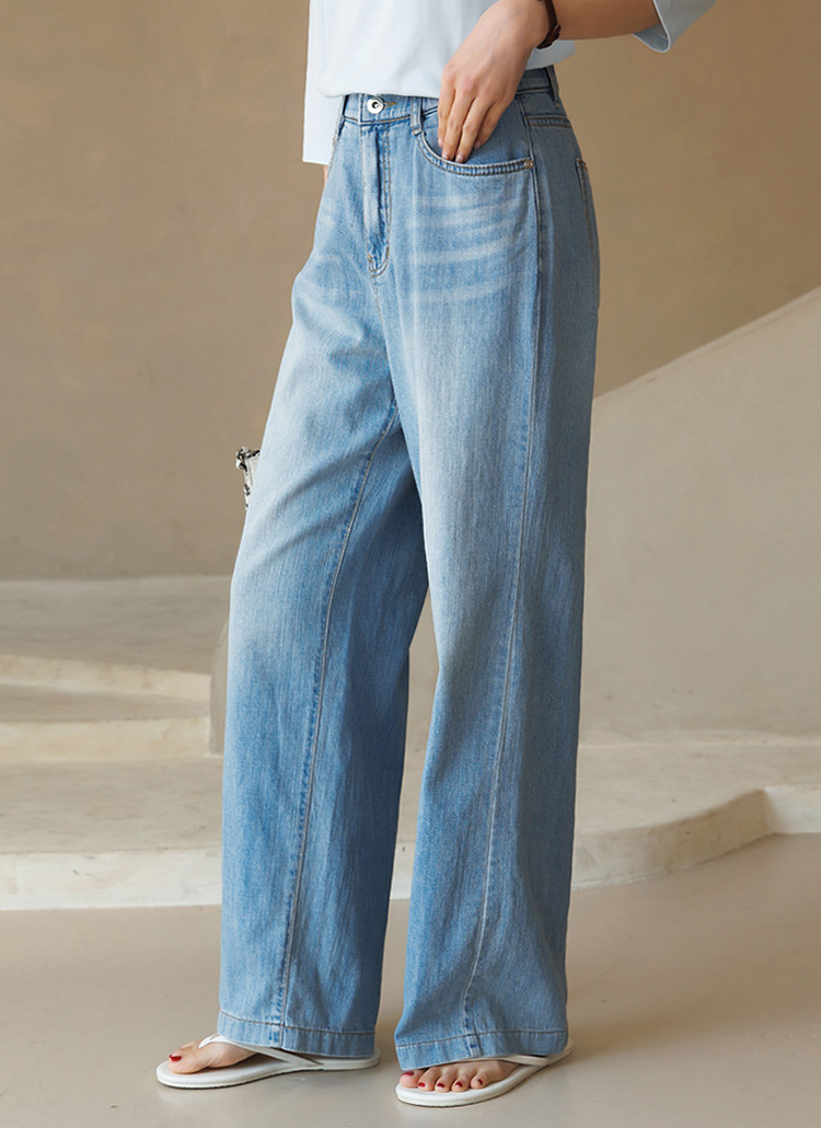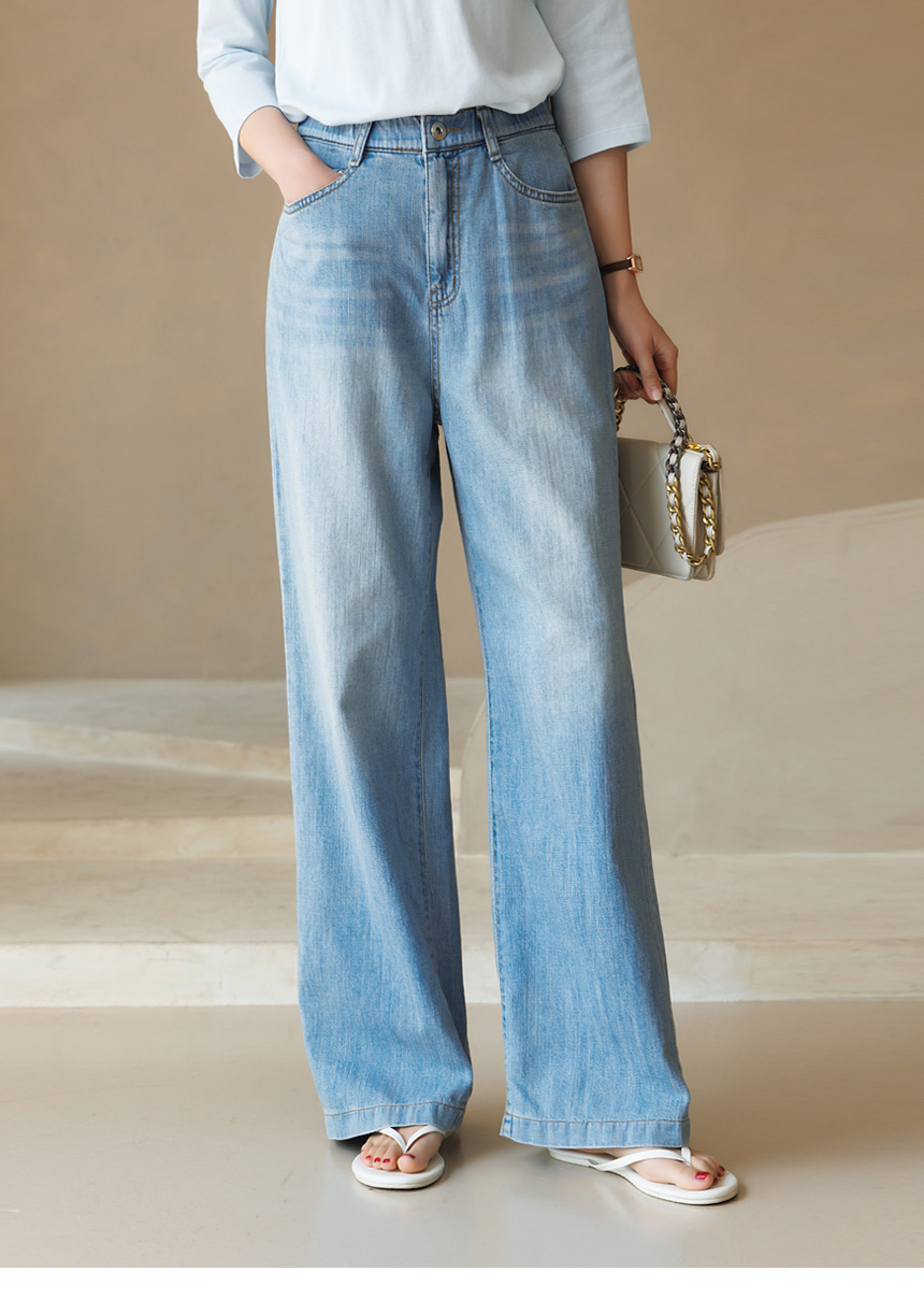 청량하고 산뜻한 무드를 선사하는 세미 와이드 데님 팬츠예요