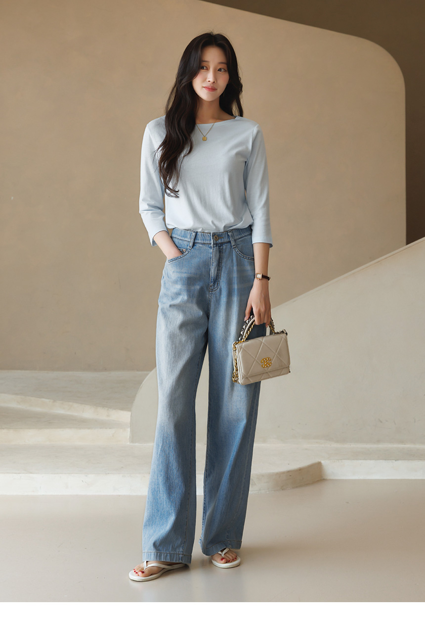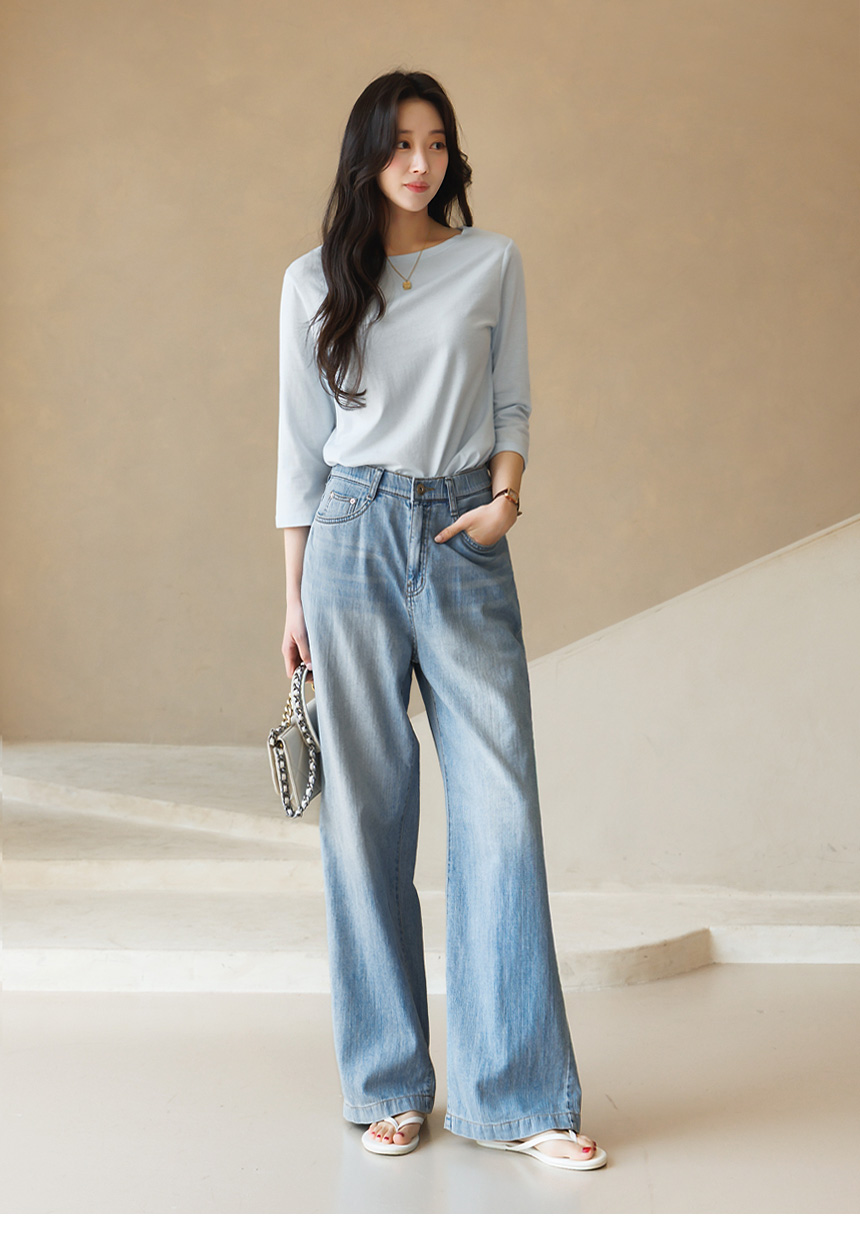 • [Theonme] 에인지 부드러운 모달 블렌딩 7부 소매 라운드 티셔츠