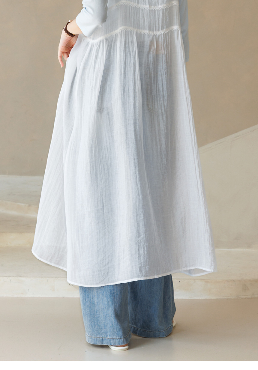 • [Theonme] 켈리 레이스 배색 시스루 거즈면 롱 베스트 뷔스티에 원피스