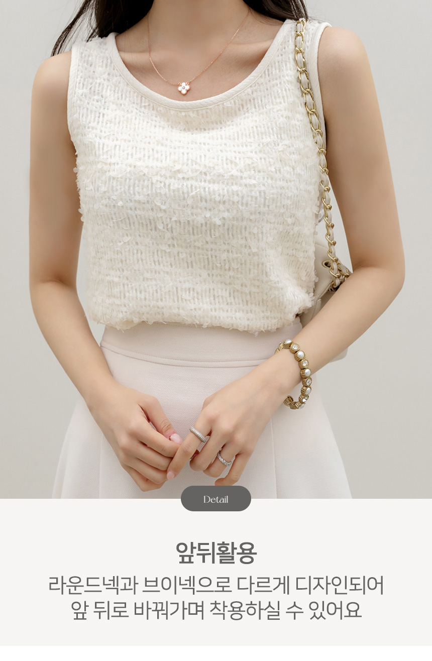 [LouisAngel] 헤니브 쟈가드 꽃잎 레이스 배색 앞 뒤 양면 UV넥 나시