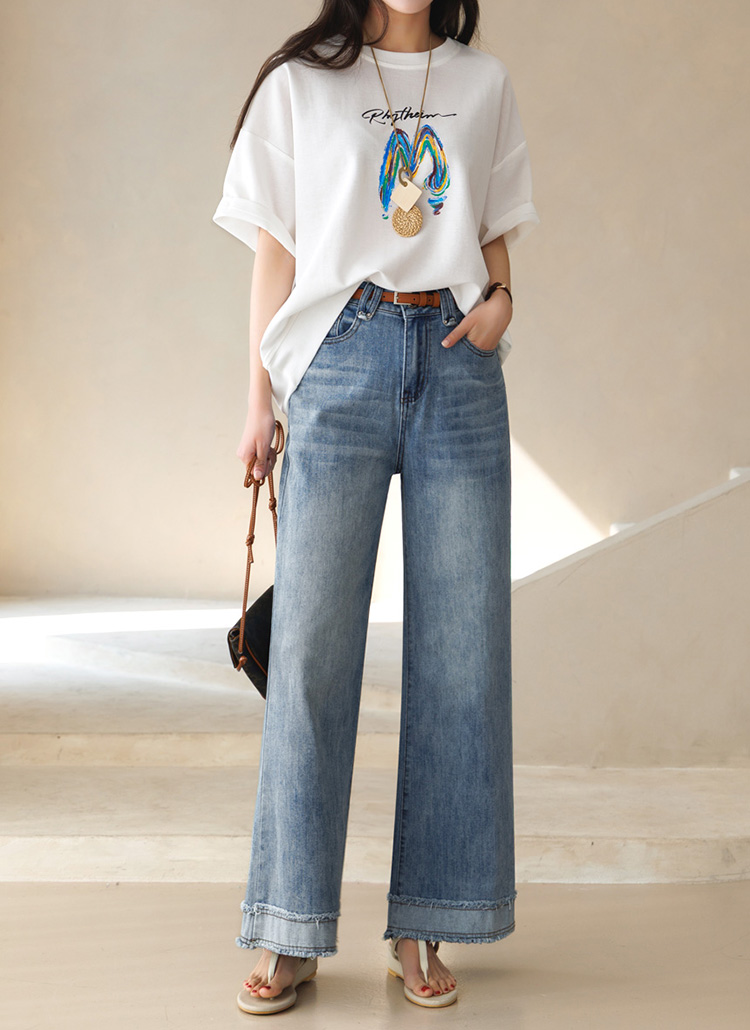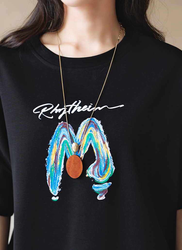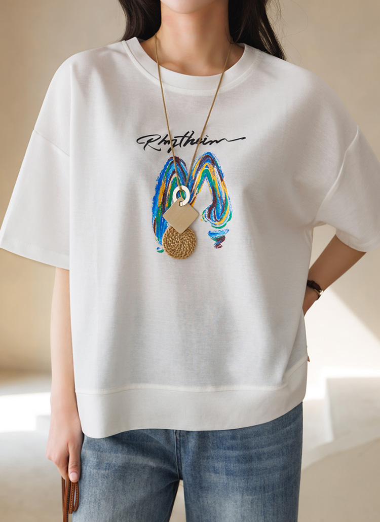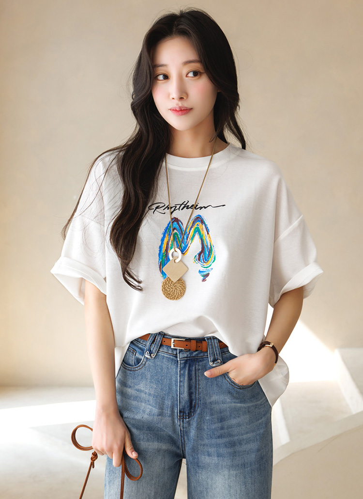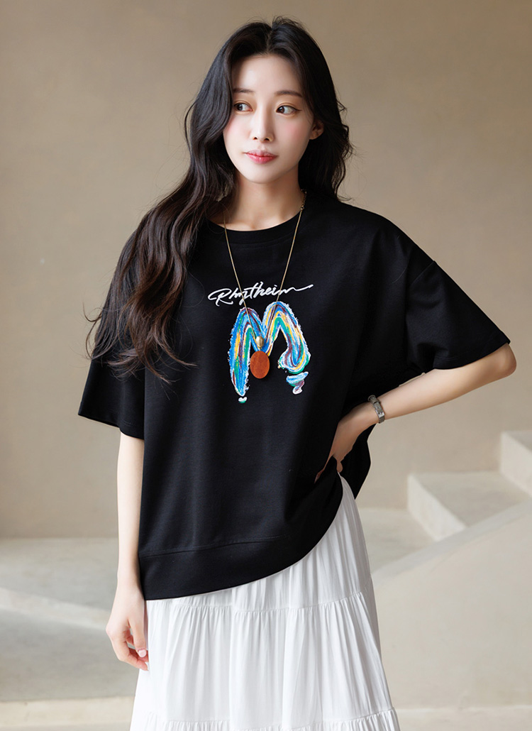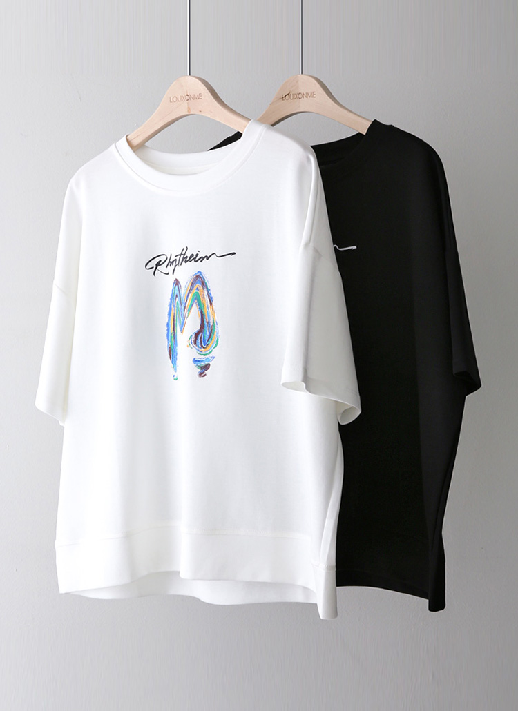 감각적인 레터링 프린트가 돋보이는 반팔 라운드 티셔츠예요
