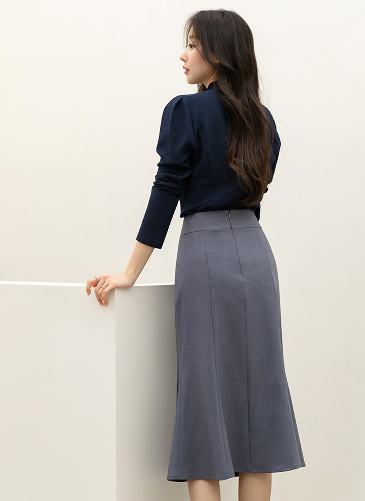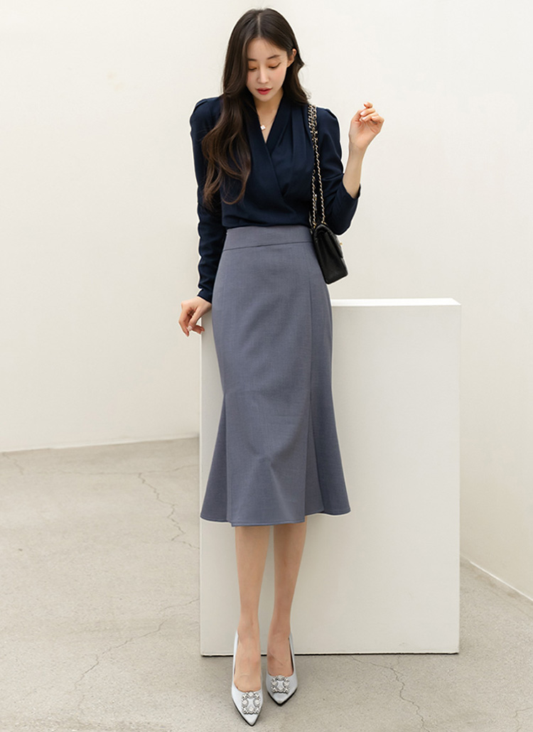 입체적인 절개 디테일로 한층 더 세련된 실루엣을 완성해주는 머메이드 스커트에요