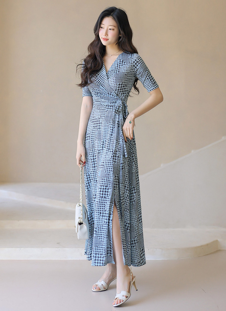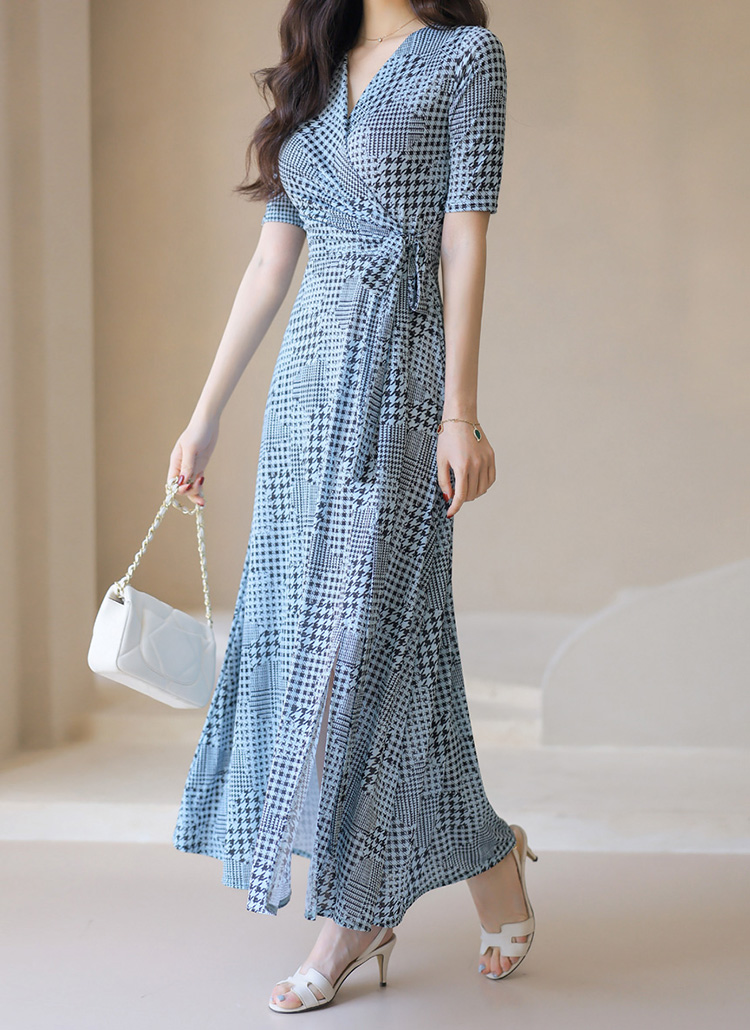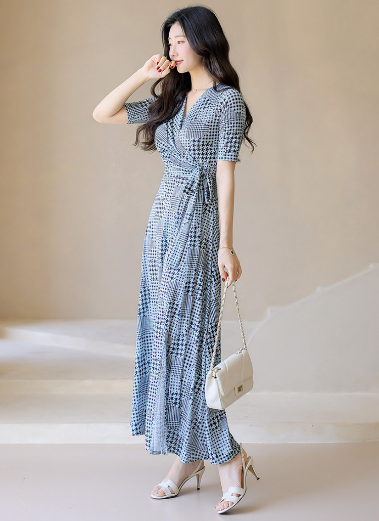 Slim Fit Check Wrap Maxi Dress