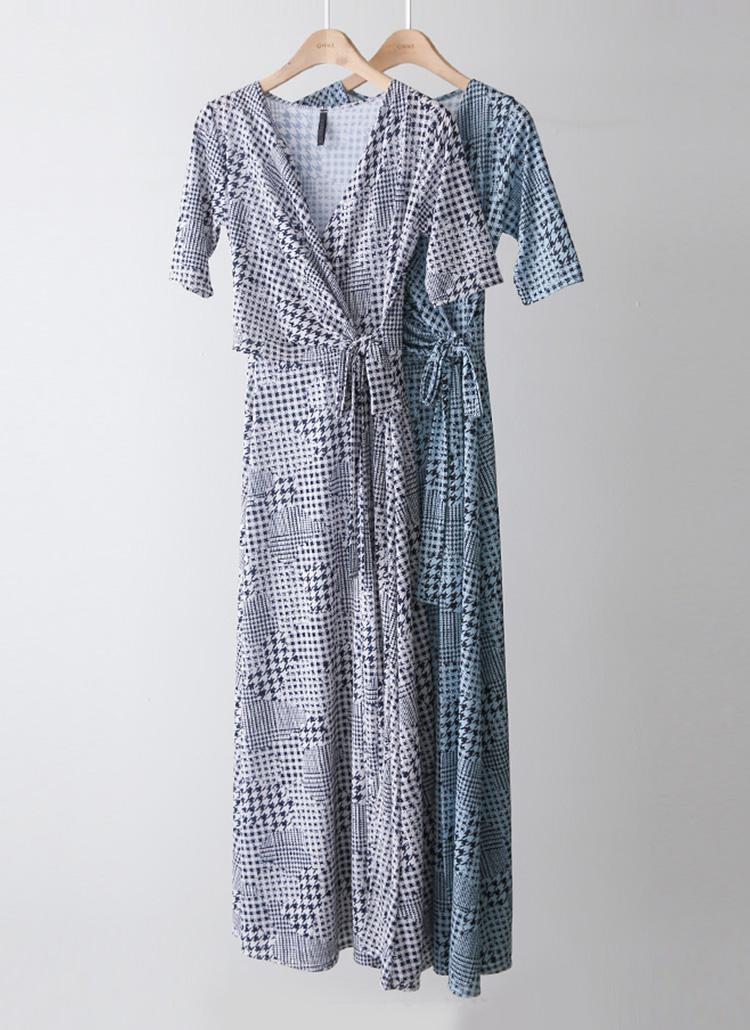 랩 디자인으로 우아하게 감싸지는 실루엣이 돋보이는 A라인 롱 원피스예요