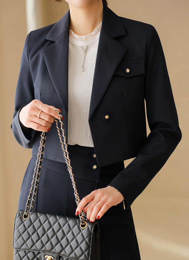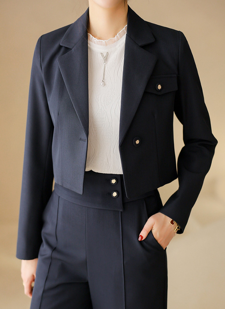 세련된 균형감과 고급스러운 디테일이 돋보이는 테일러드 크롭 자켓이에요