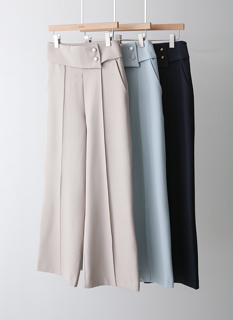 세련된 디테일과 균형감 있는 실루엣으로 완성된 세미 와이드 슬랙스예요