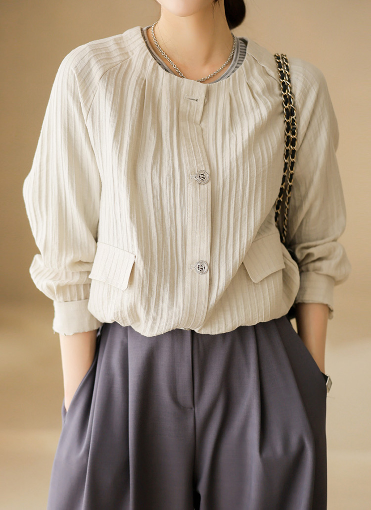 가볍고 시원한 링클 텐셀 밑단 스트링 긴팔 자켓