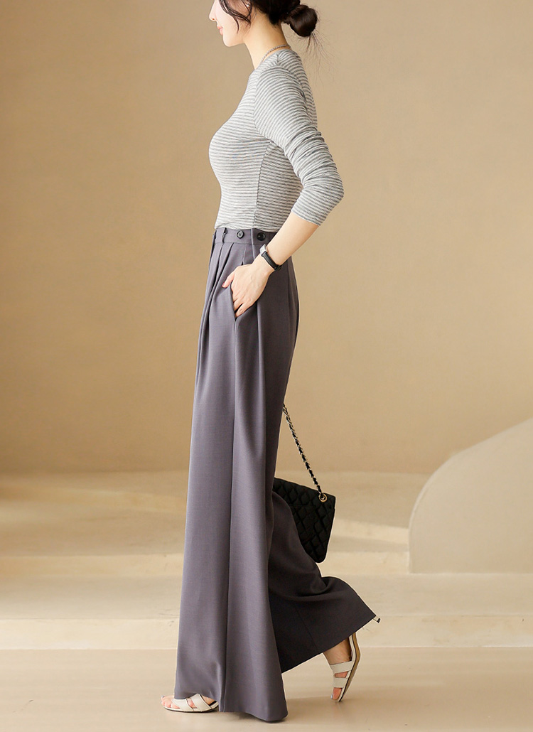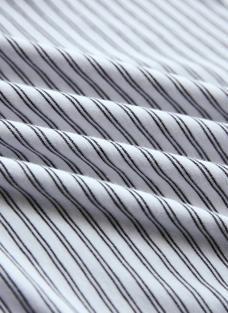 잔잔한 디테일 속 세련된 감각이 돋보이는 스트라이프 티셔츠예요