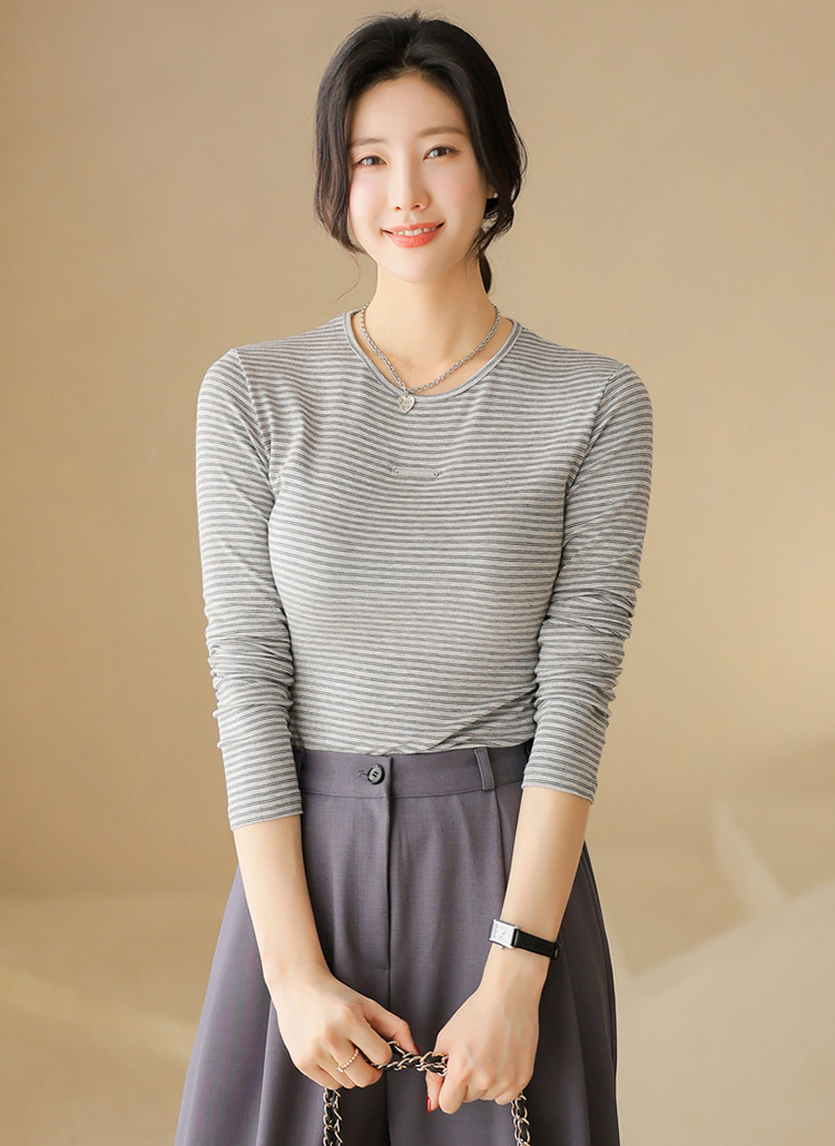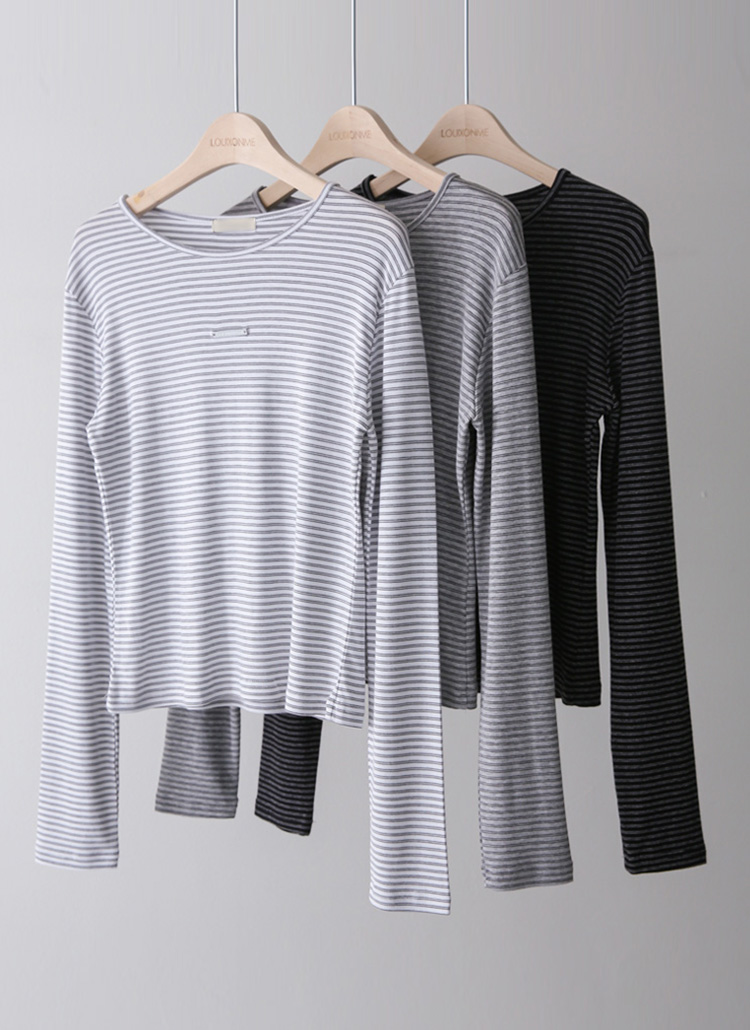 스트라이프 보들보들 터치감 라운드 긴팔 티셔츠