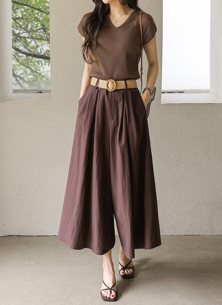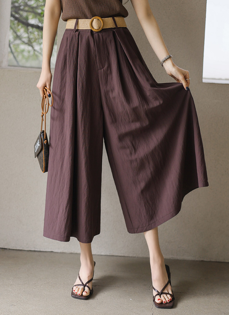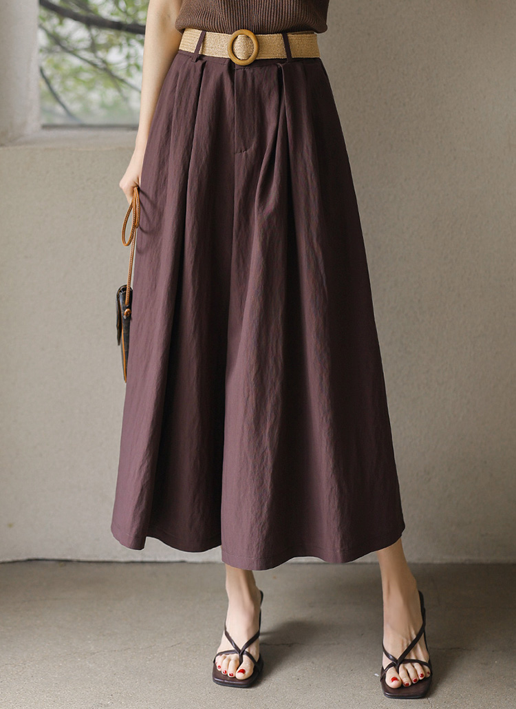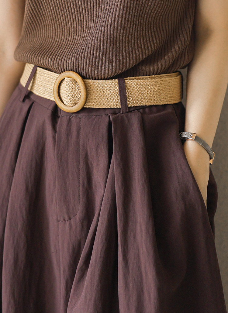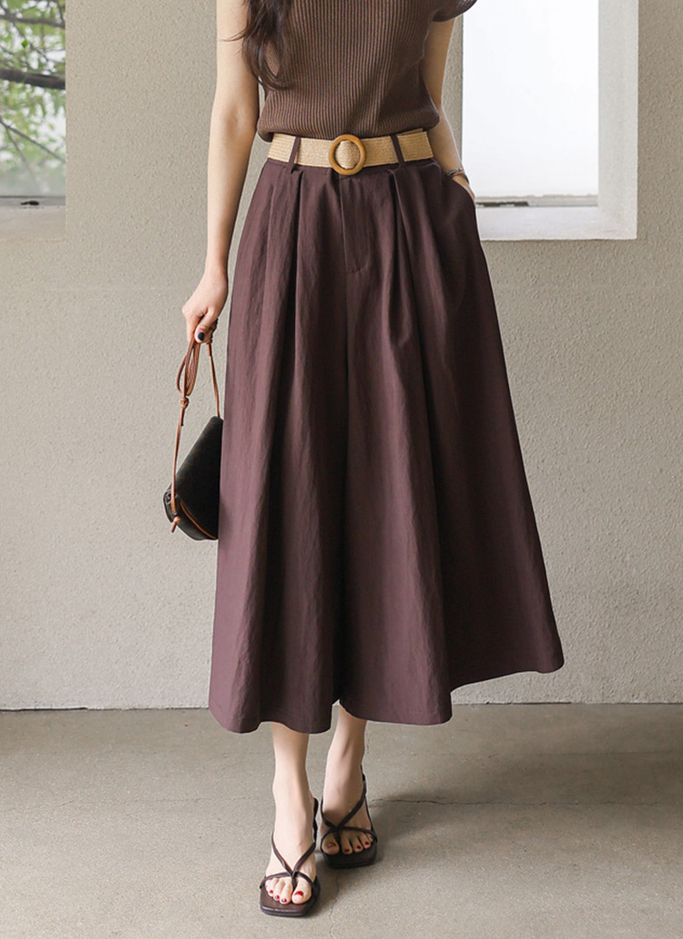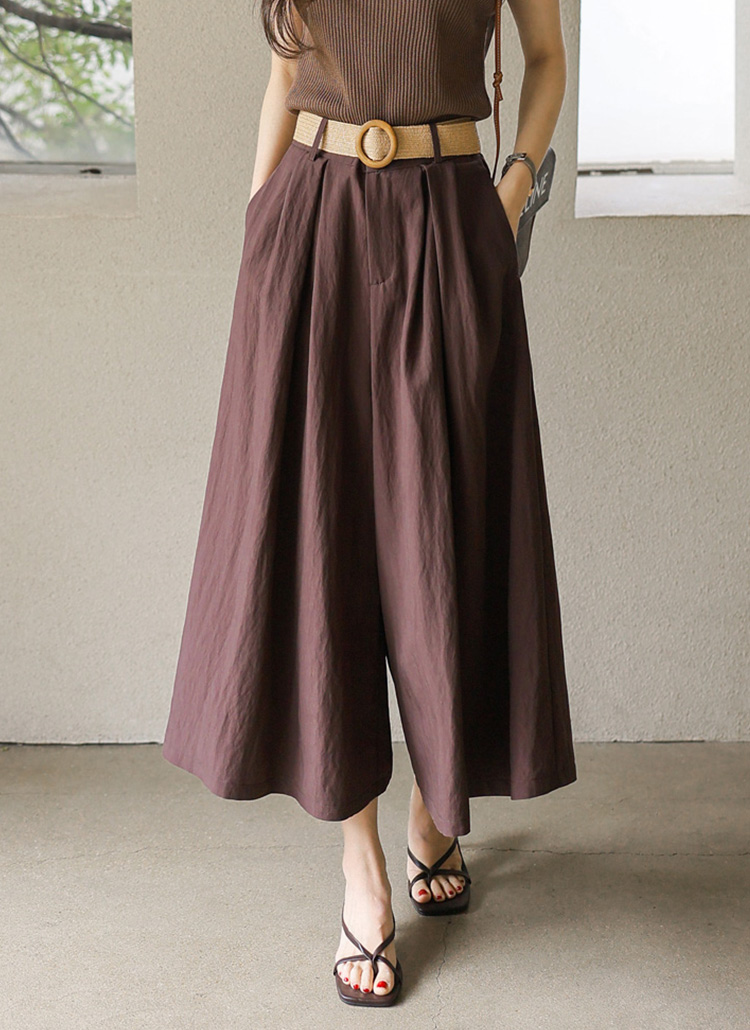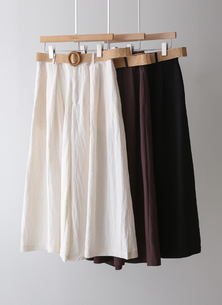 페이퍼벨트SET 백밴딩 투핀턱 와이드 9부 치마 바지