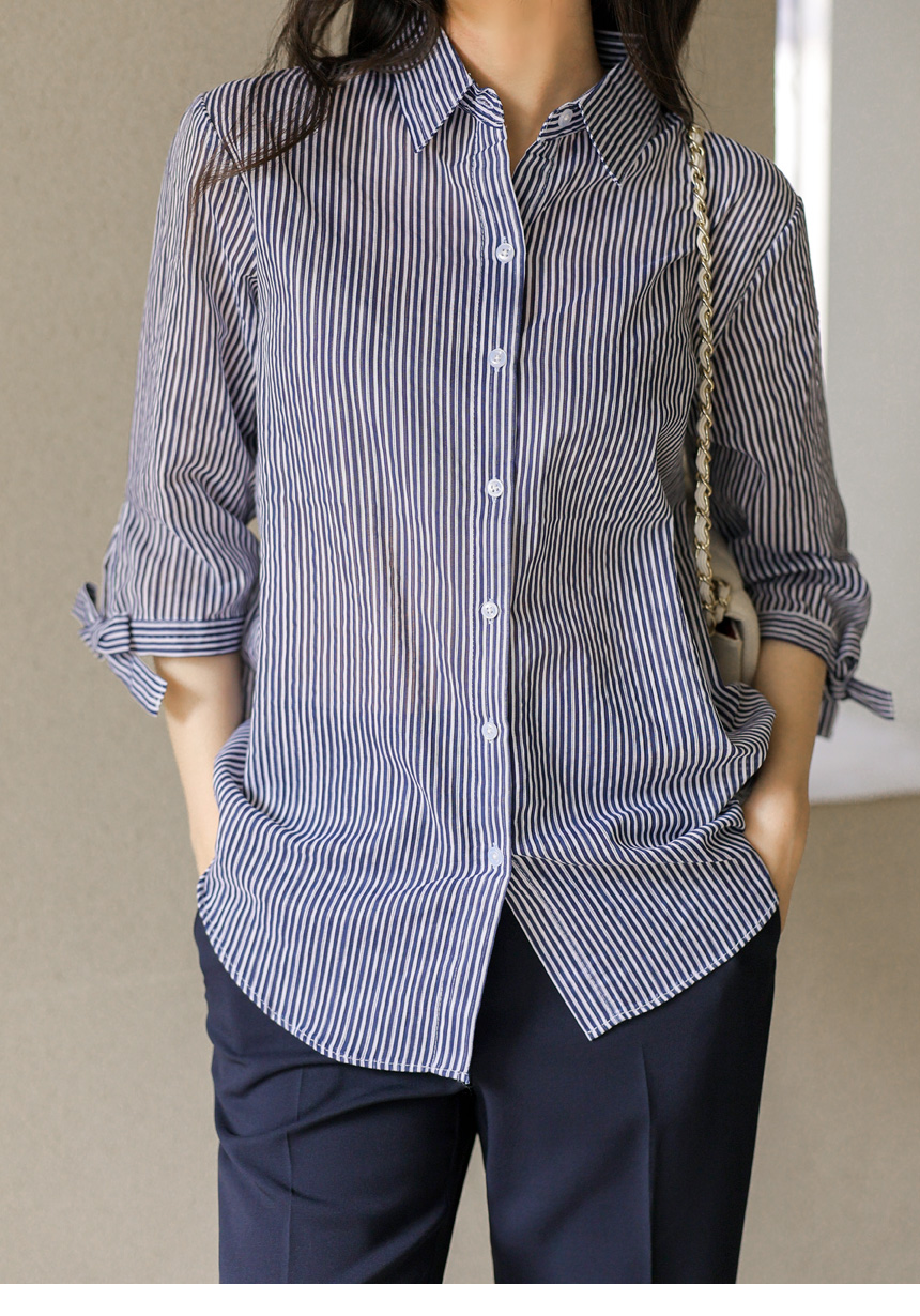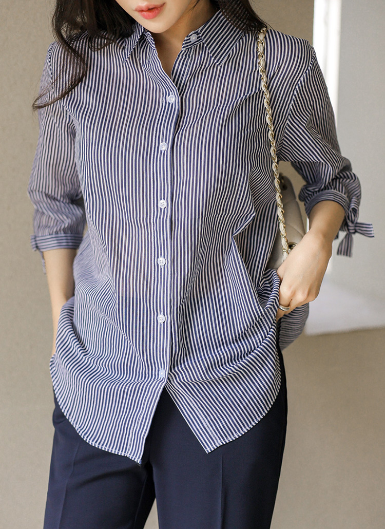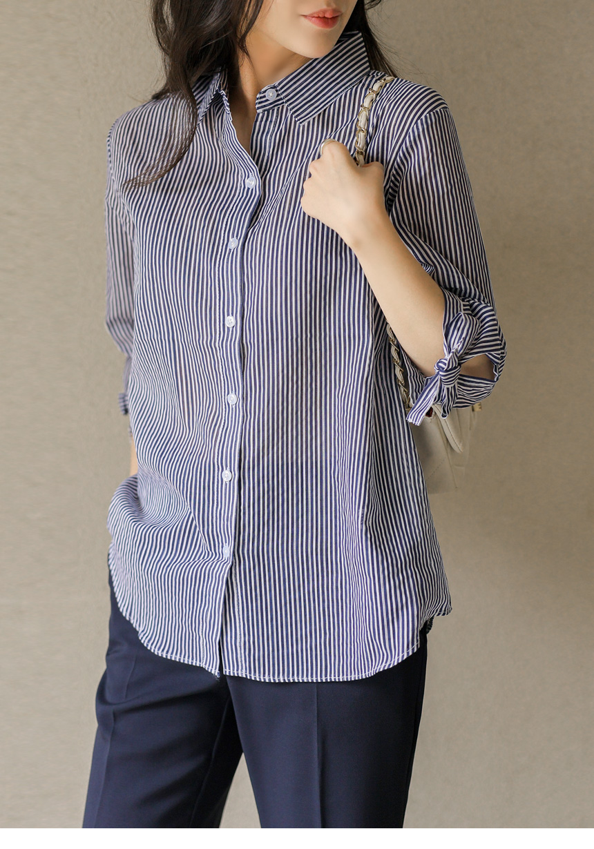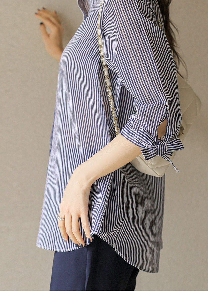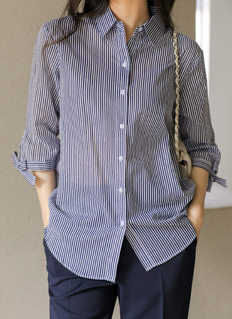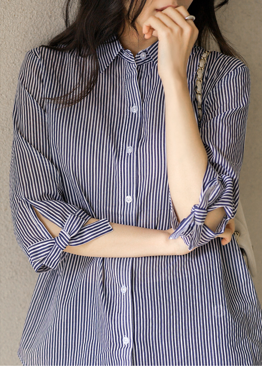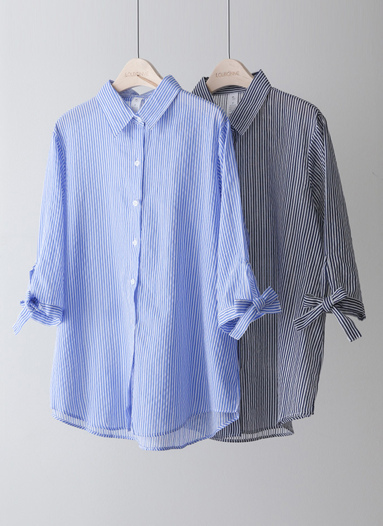 [Special Price] Ribbon Cuff Stripe Lightweight Shirt