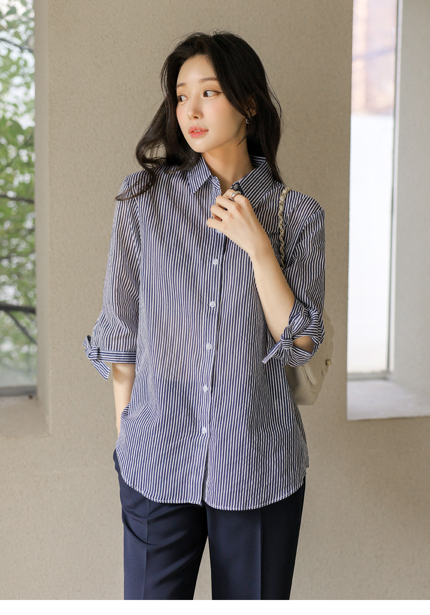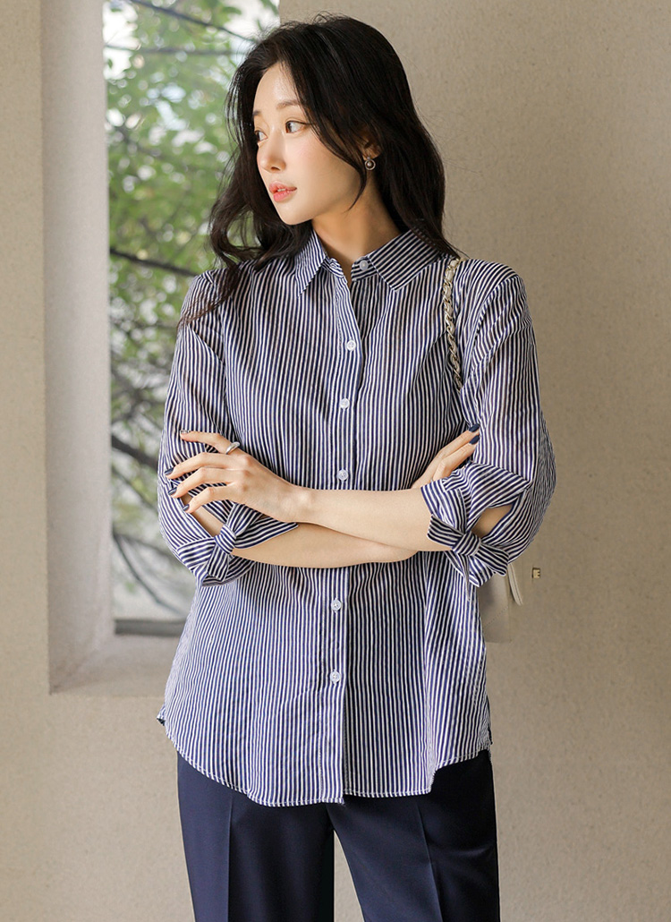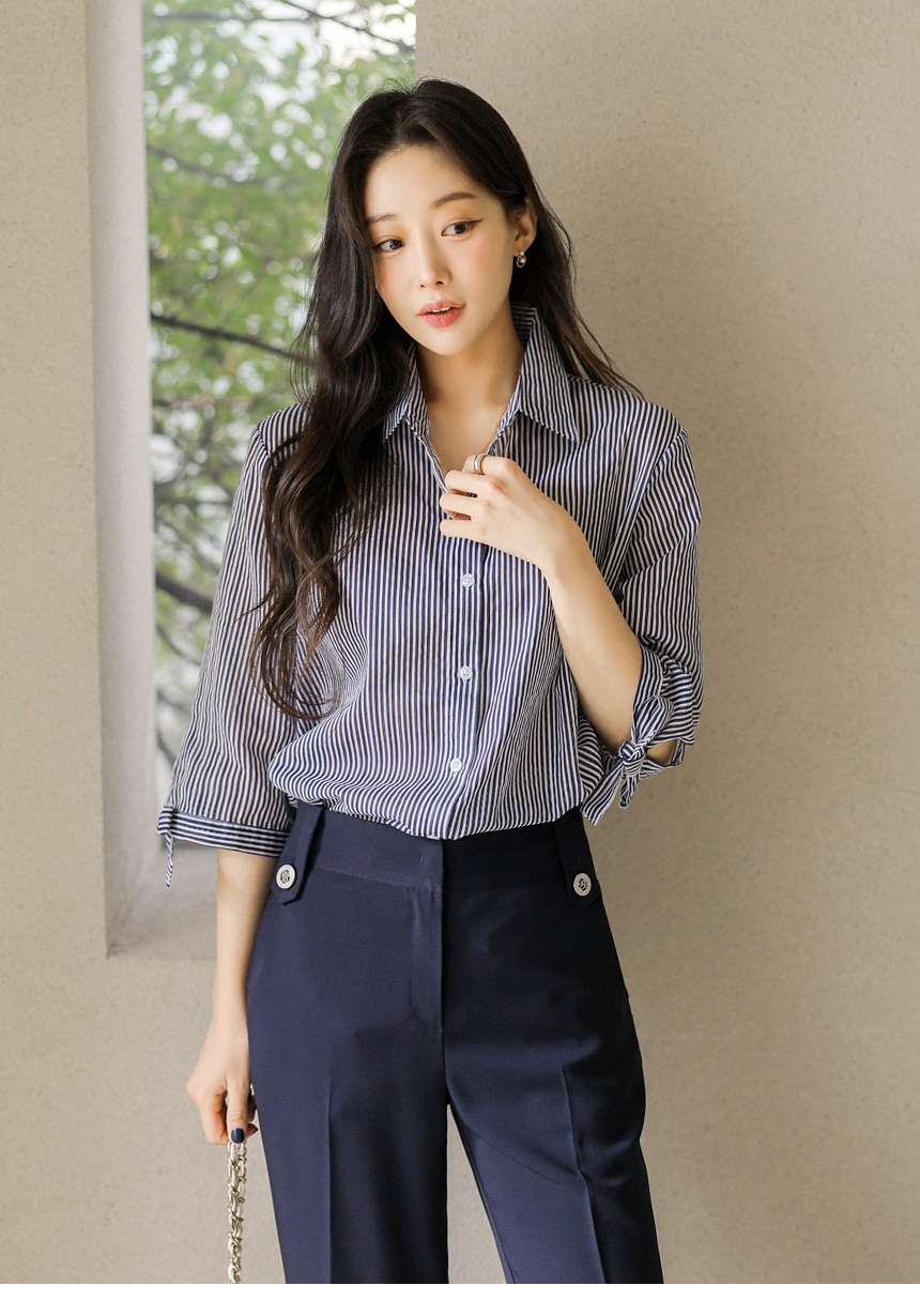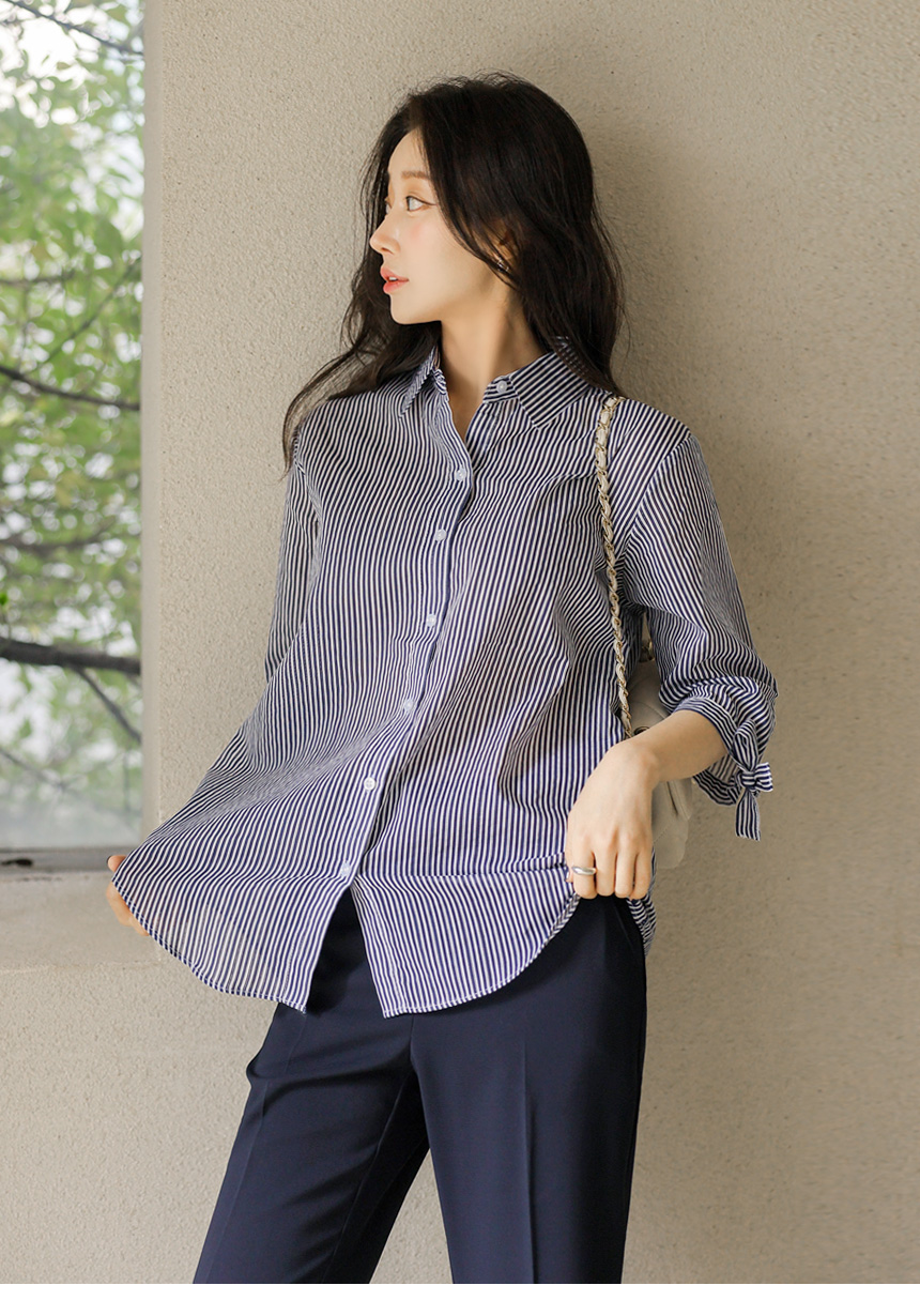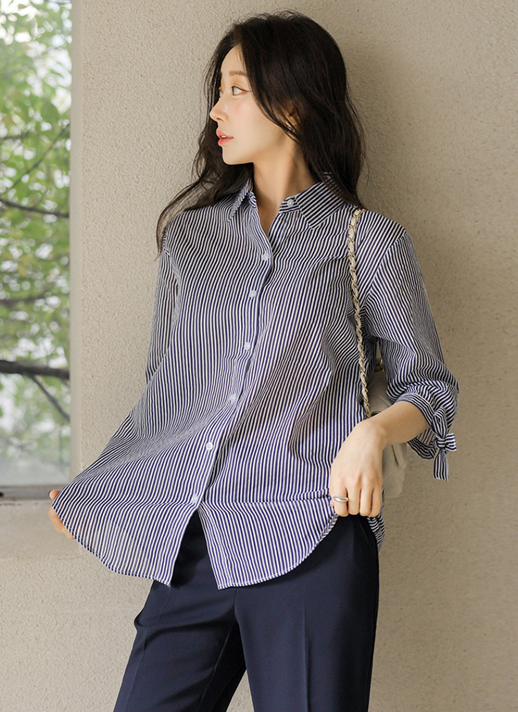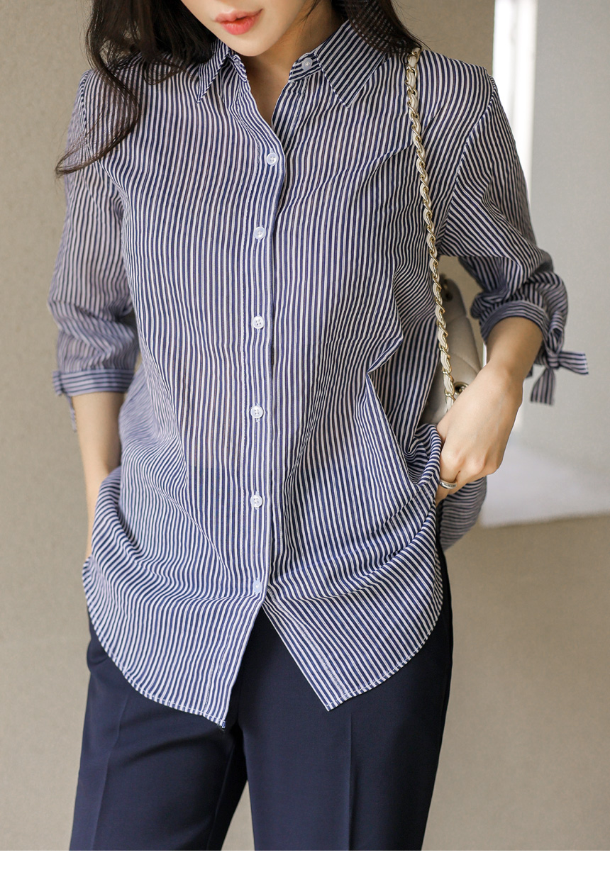 [Special Price] Ribbon Cuff Stripe Lightweight Shirt