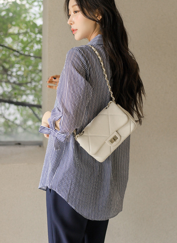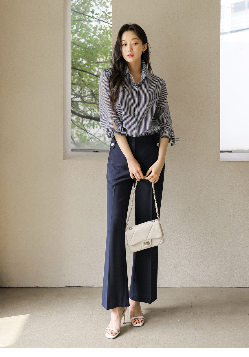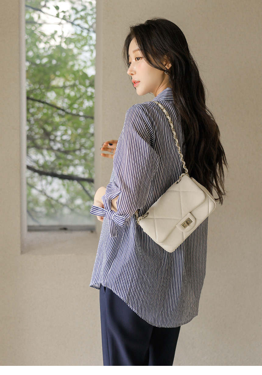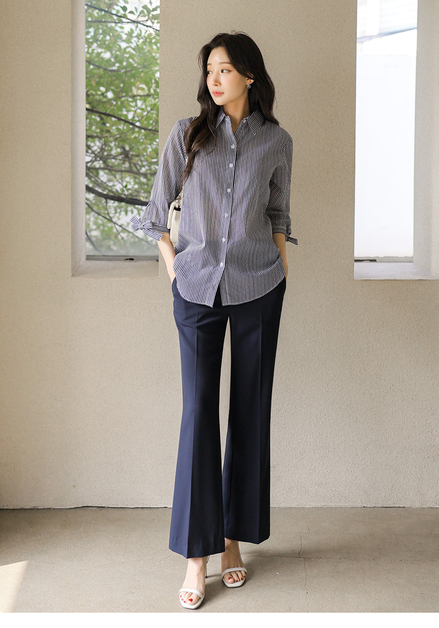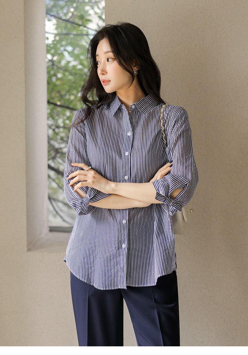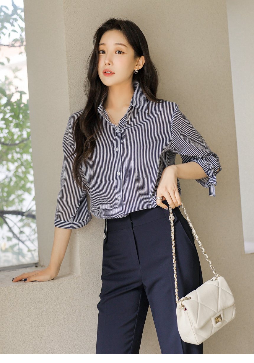 [Special Price] Ribbon Cuff Stripe Lightweight Shirt