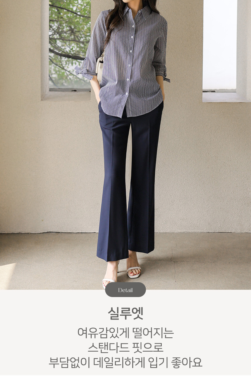 구김이 적은 소재 특성으로 언제 어디서나 말끔하고 단정한 실루엣을 유지해