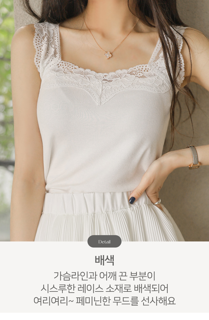 어깨 끈과 바스트 라인을 따라 하트 쉐입으로 더해진 시스루 레이스 배색이