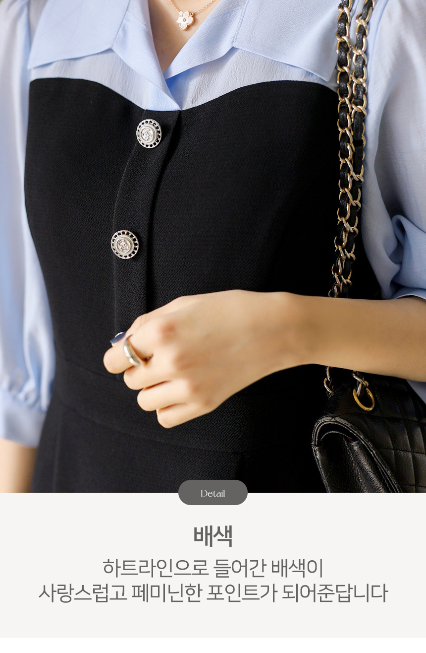 하트라인으로 부드럽게 이어지는 배색 디테일이 시선을 사로잡는