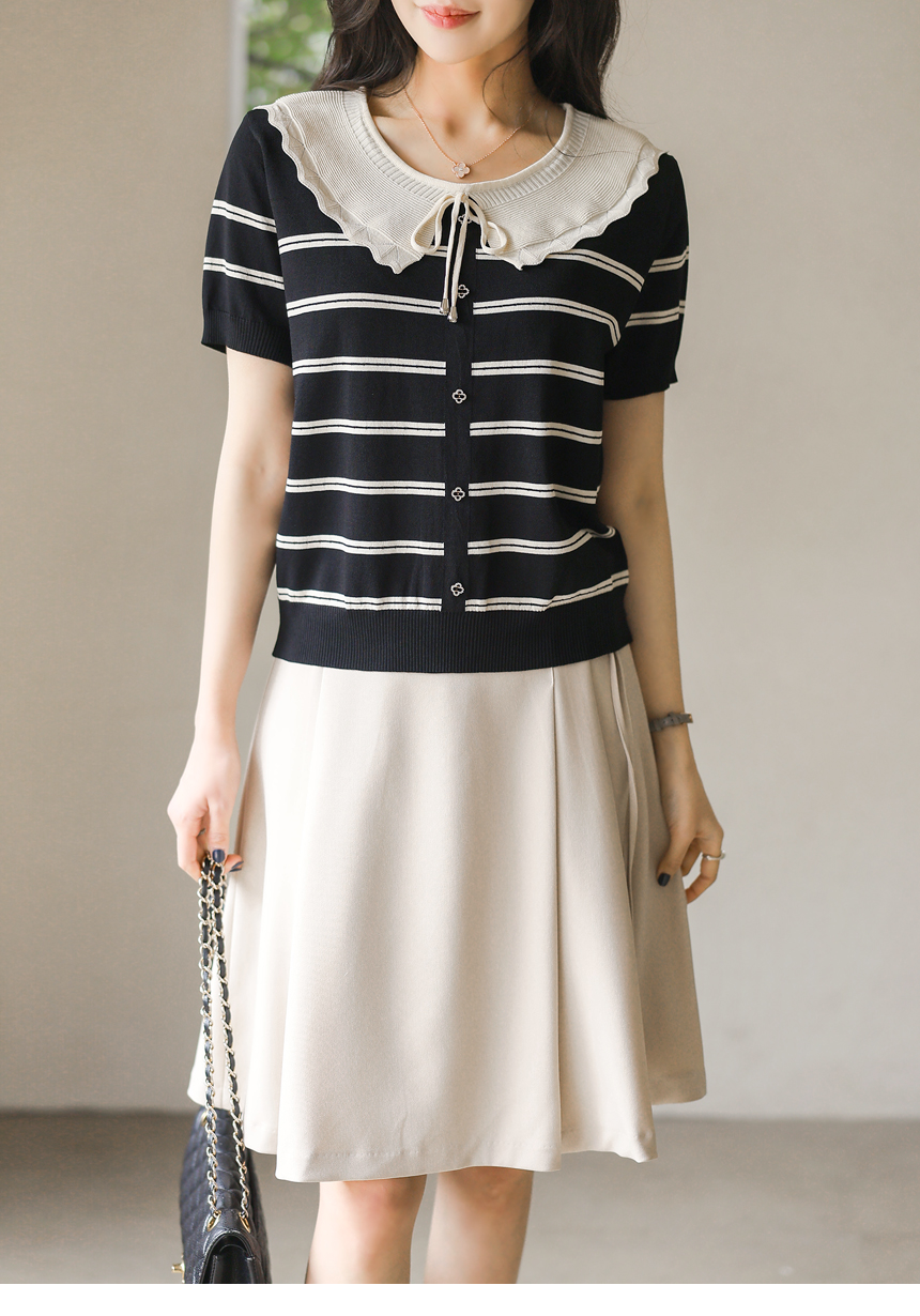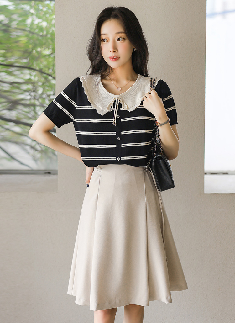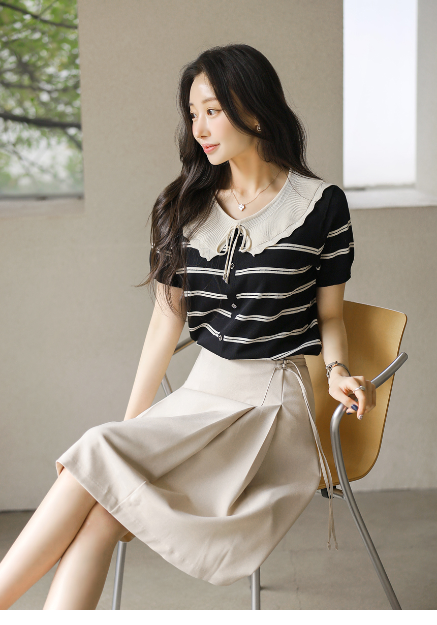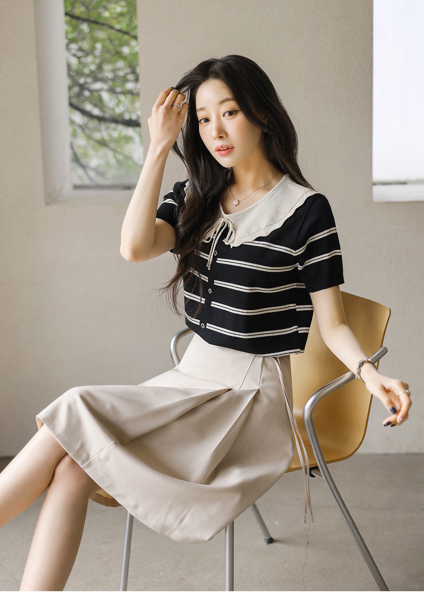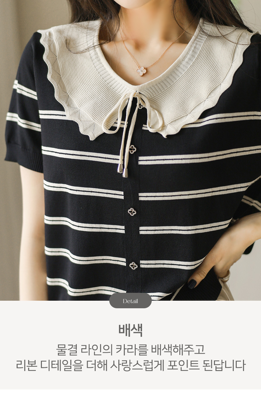 물결처럼 부드럽게 흐르는 배색 카라 디테일이 더해져