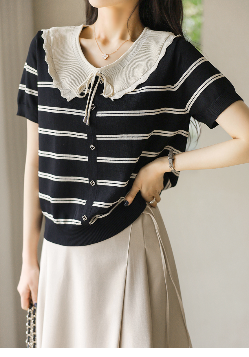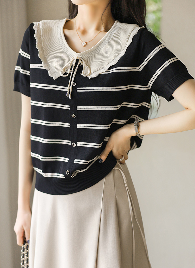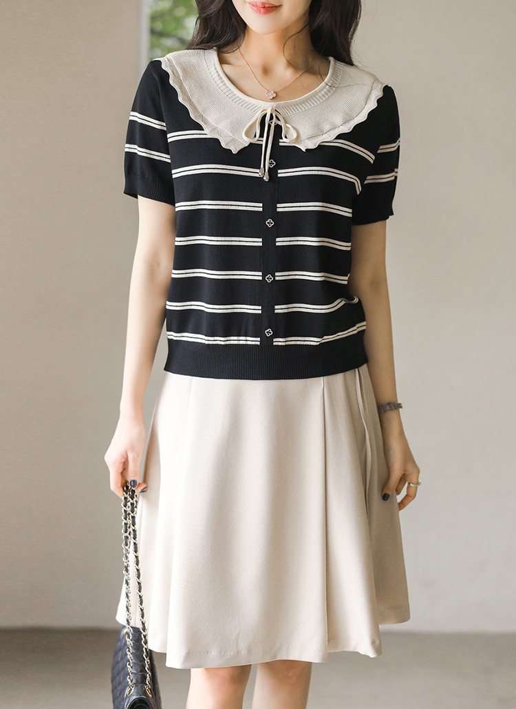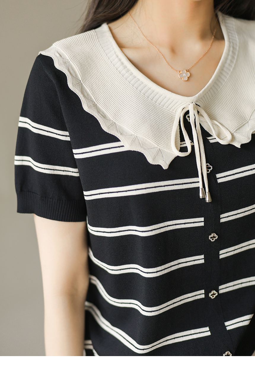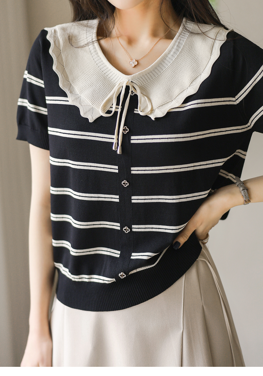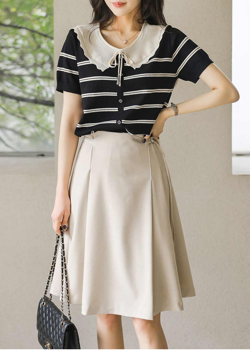 물결처럼 부드럽게 흐르는 배색 카라 디테일이 더해져