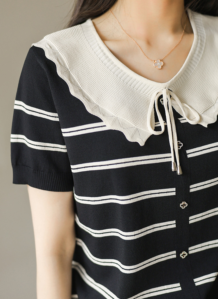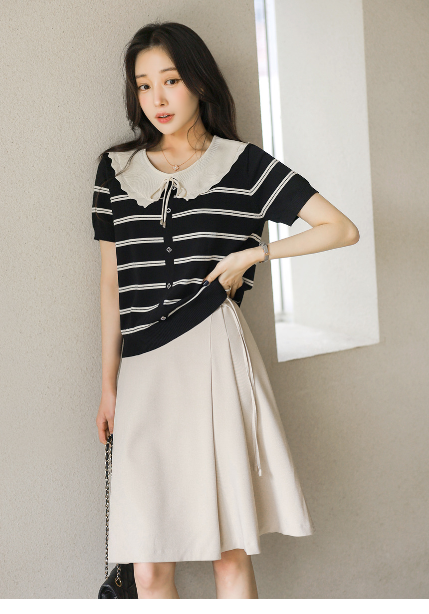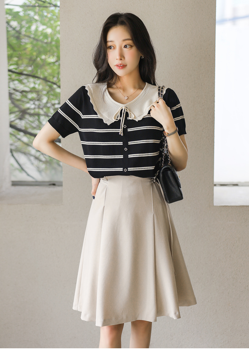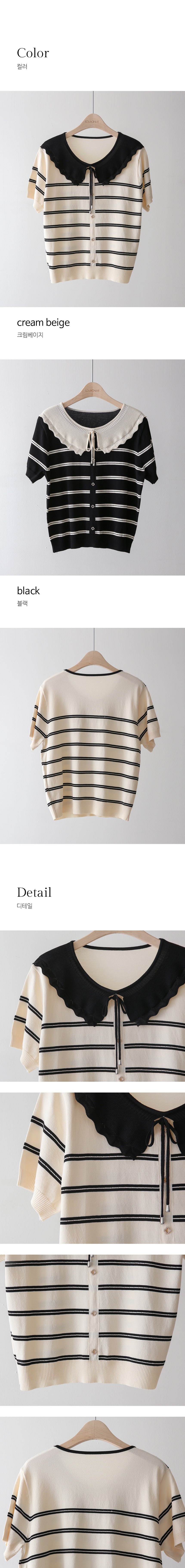 넥라인을 따라 자연스럽게 퍼지는 웨이브 카라가