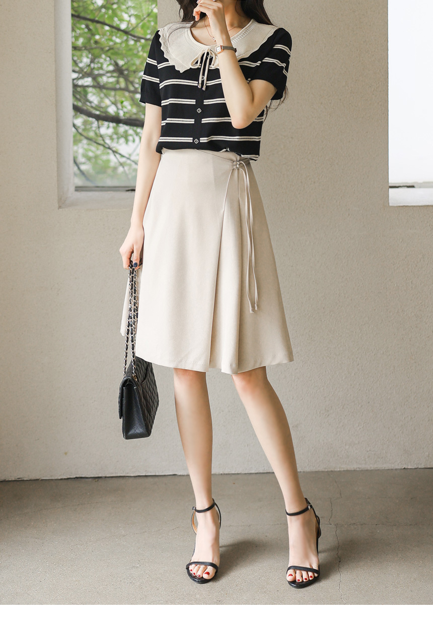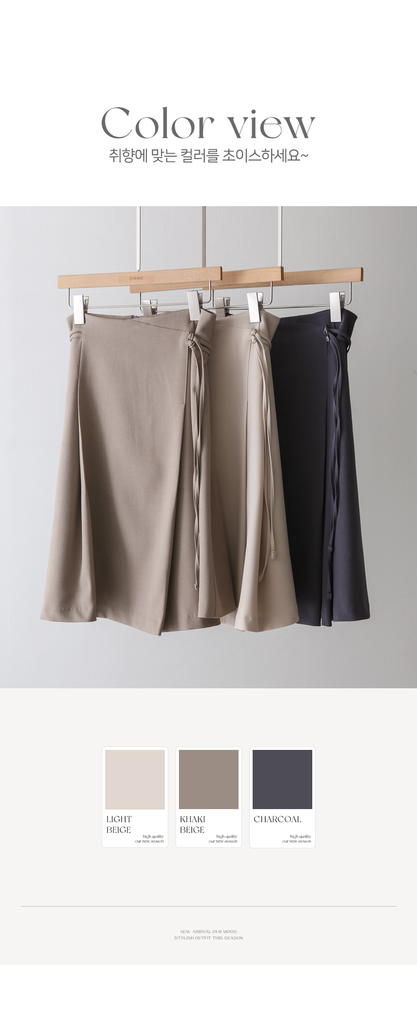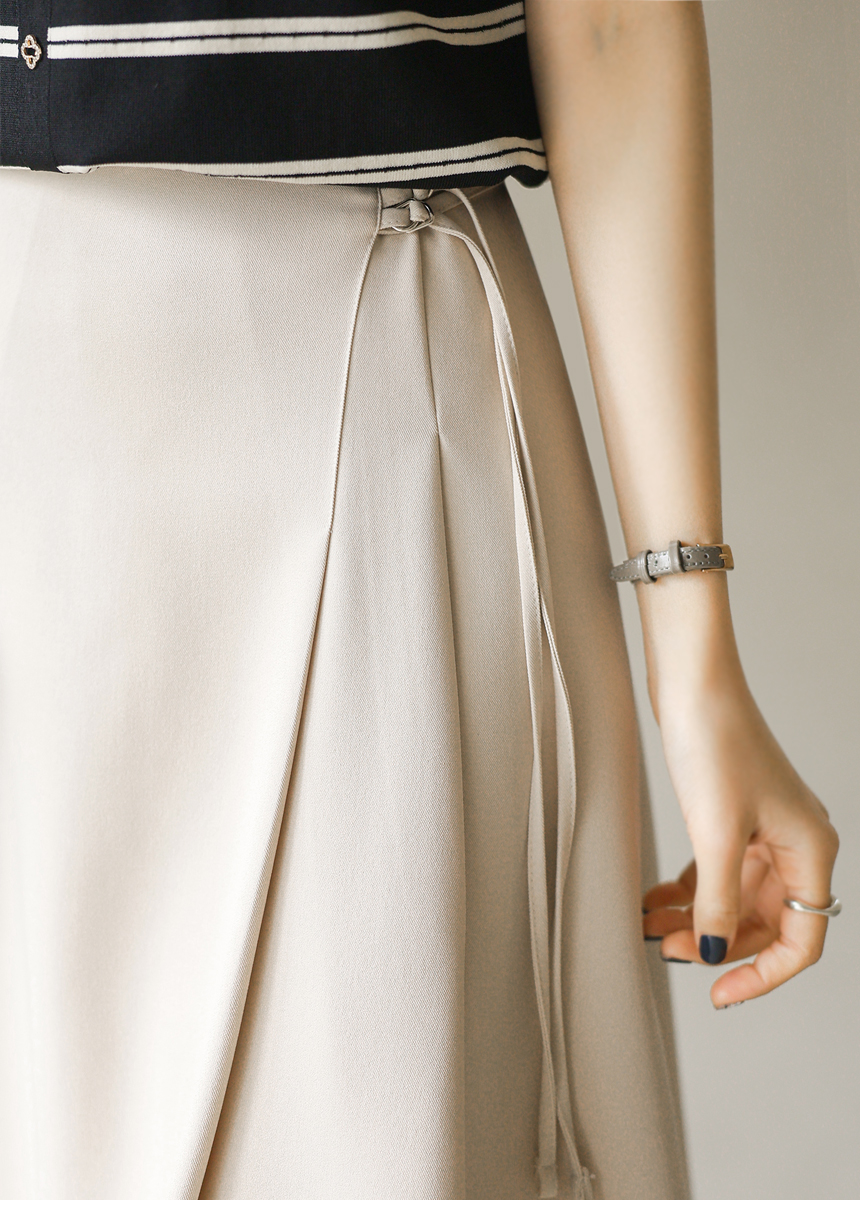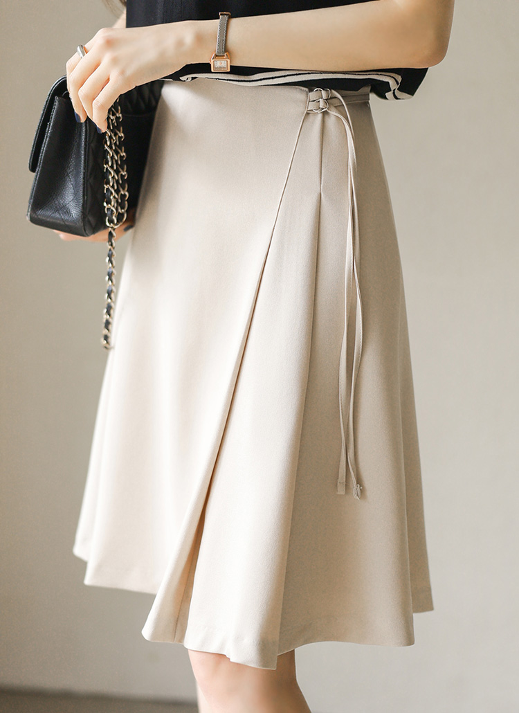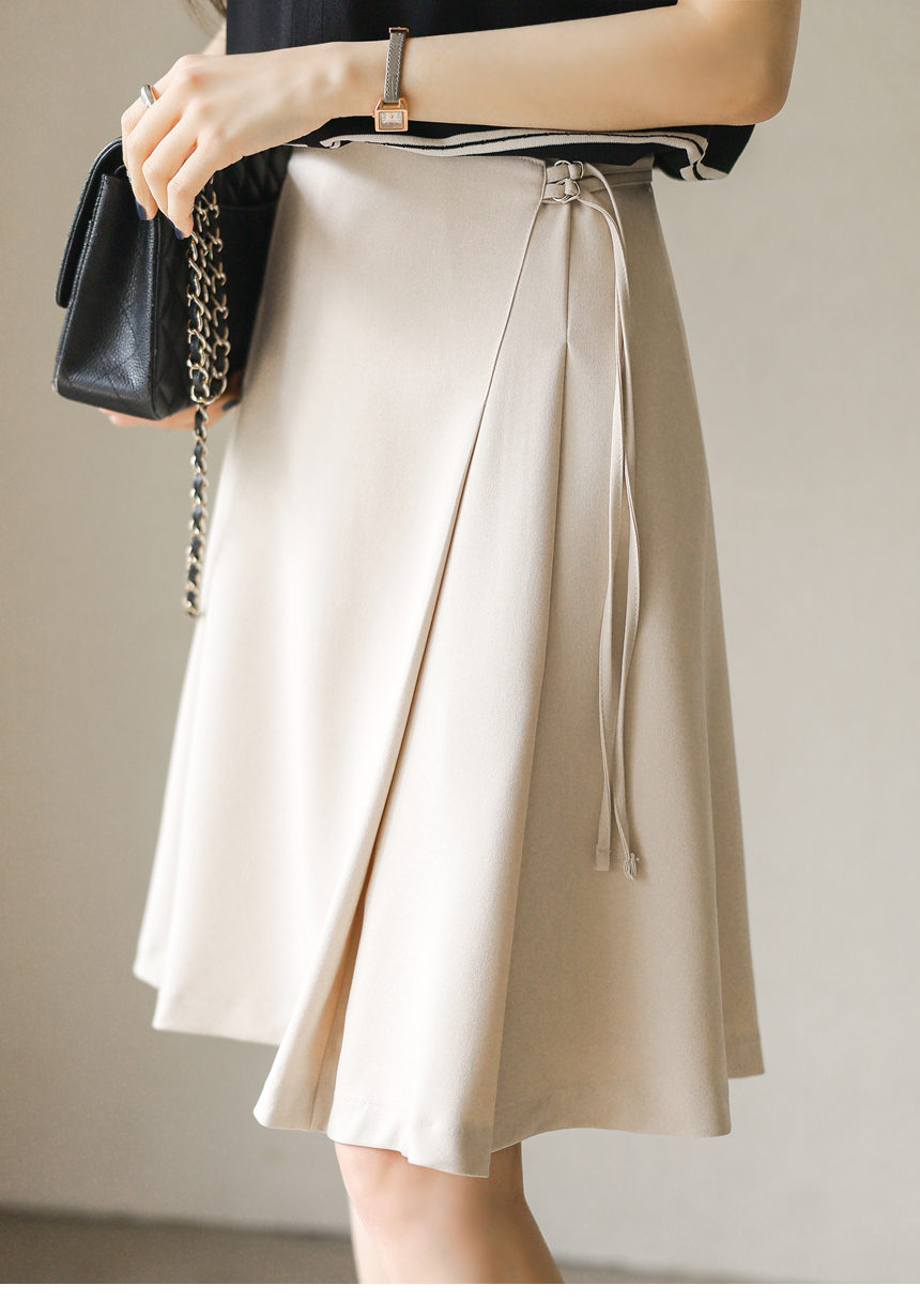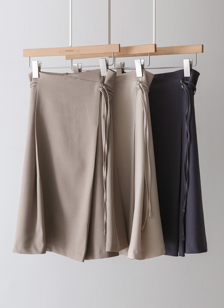 (55-77) A라인 플레어 랩 디자인 더블 벨티드 디테일 미디 스커트