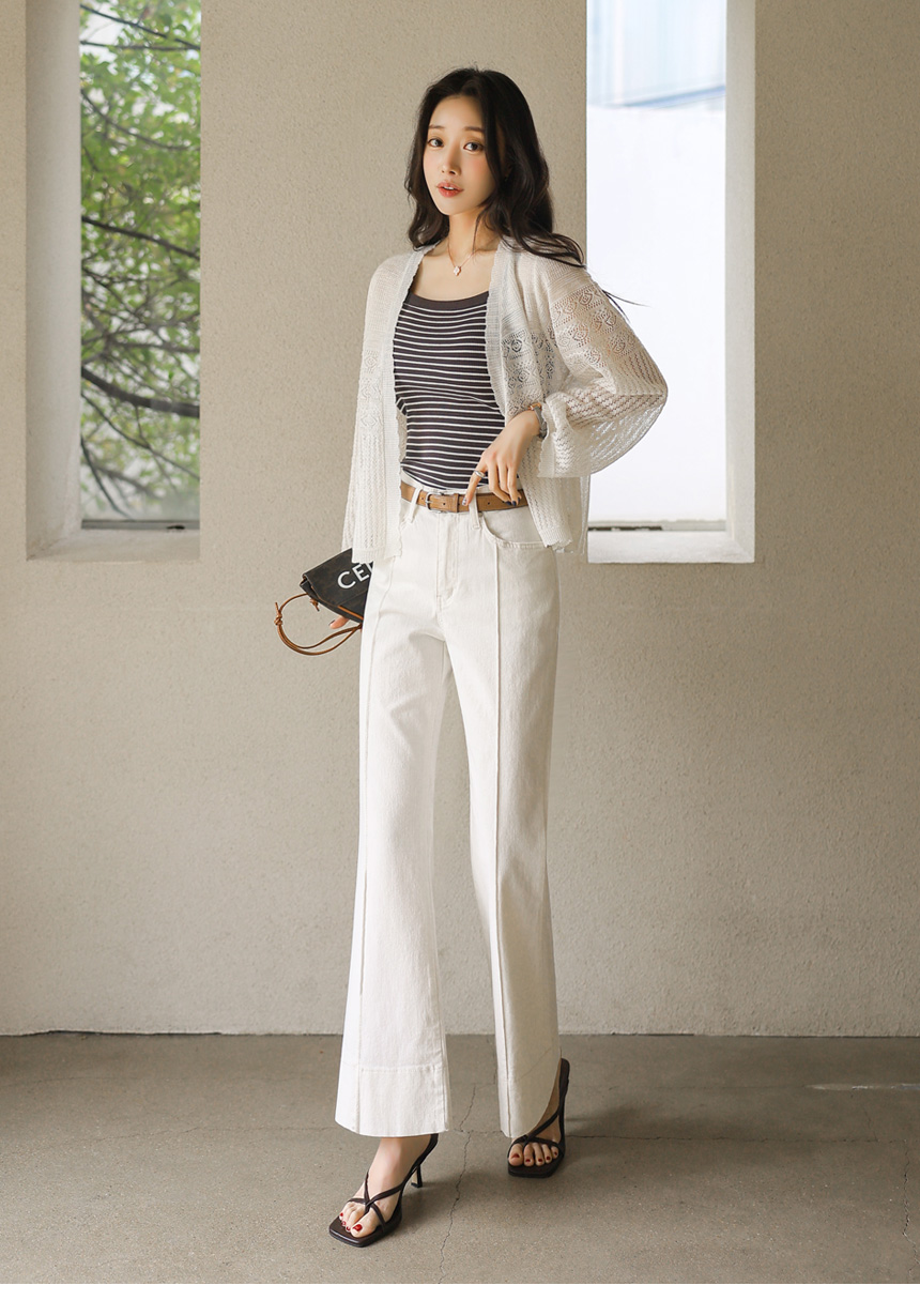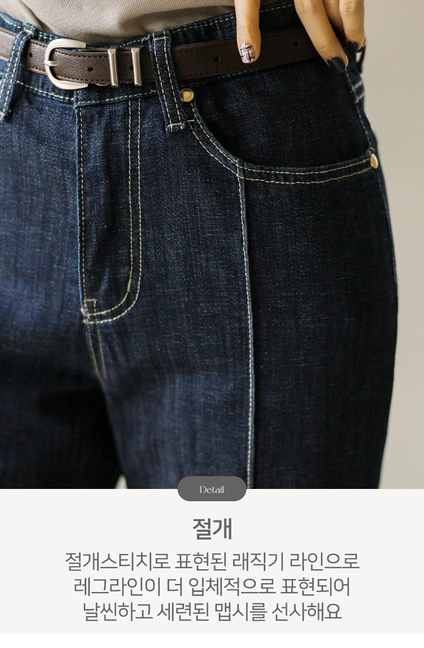 무릎 아래로 은은하게 퍼지는 부츠컷 라인이 더해져