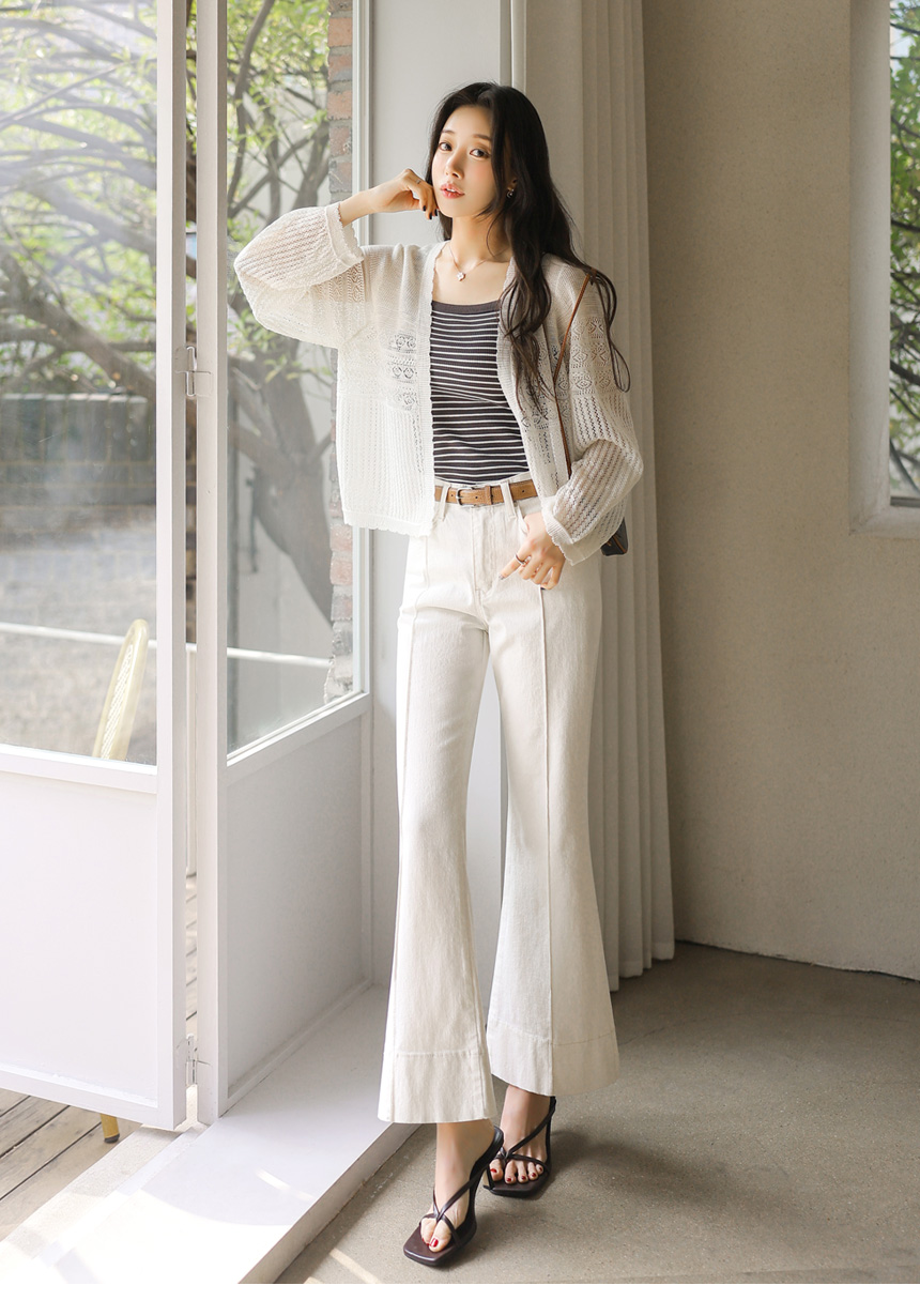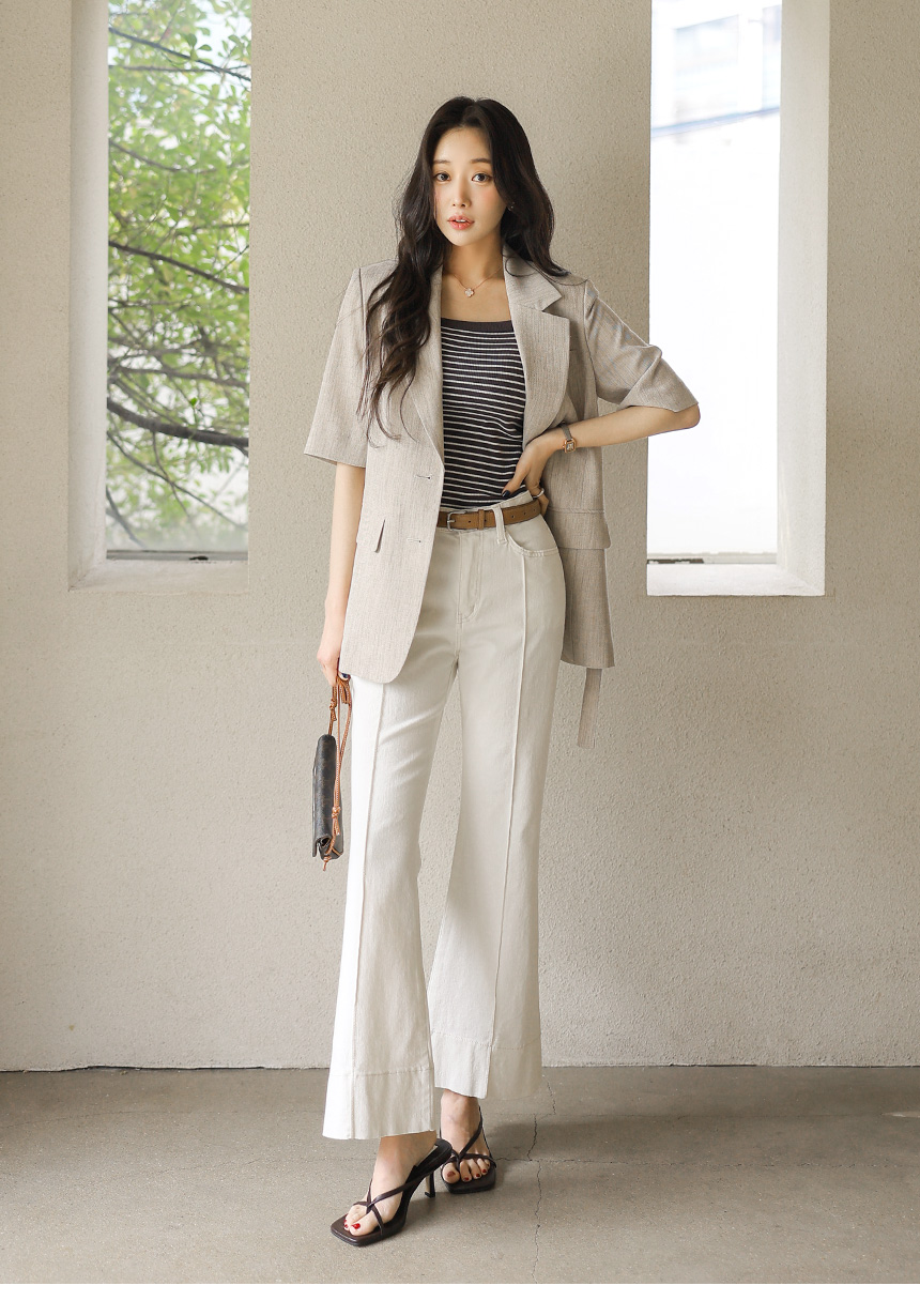 세련된 실루엣과 섬세한 디테일이 돋보이는 슬림 부츠컷 팬츠예요