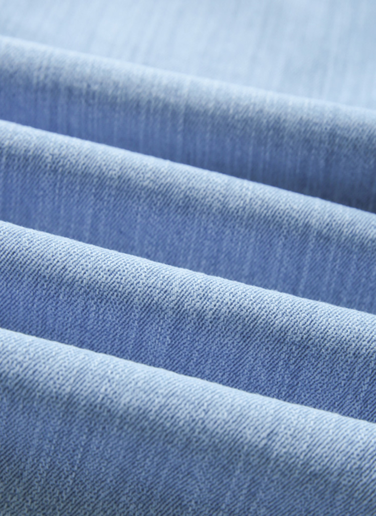 적당한 두께감의 탄탄한 데님 원단은 실루엣을 안정감 있게 잡아주어