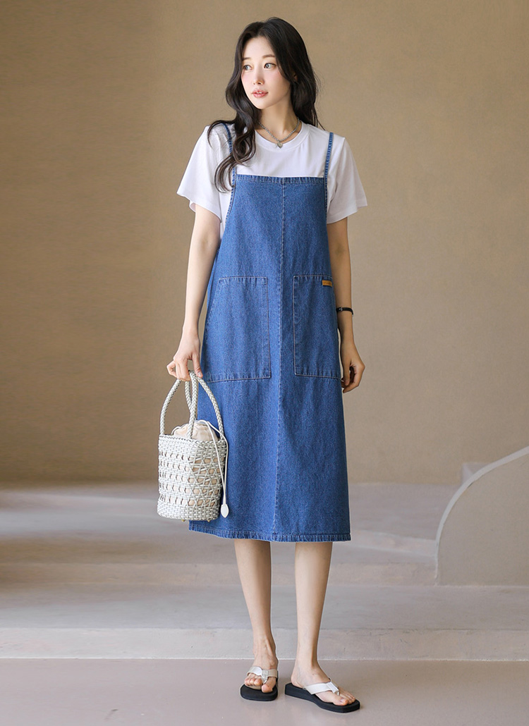 [Theonme] 패치포인트 투포켓 데님 원피스