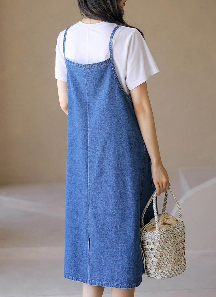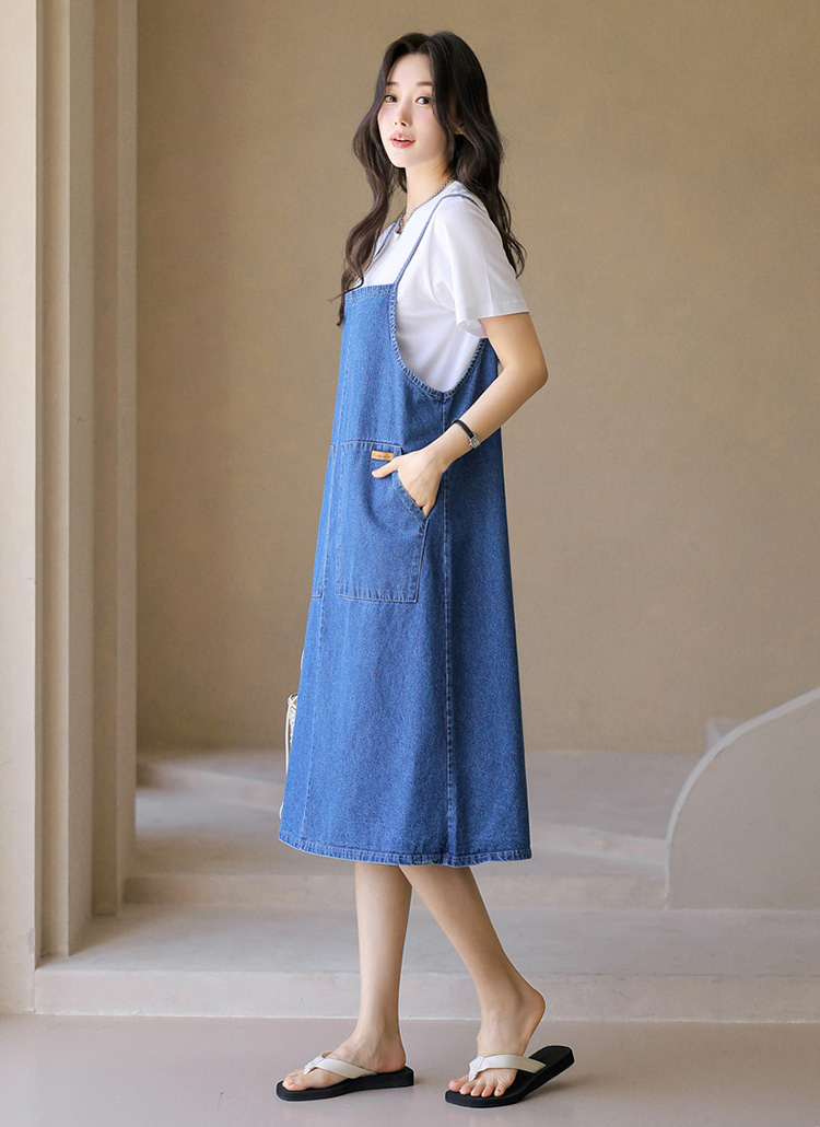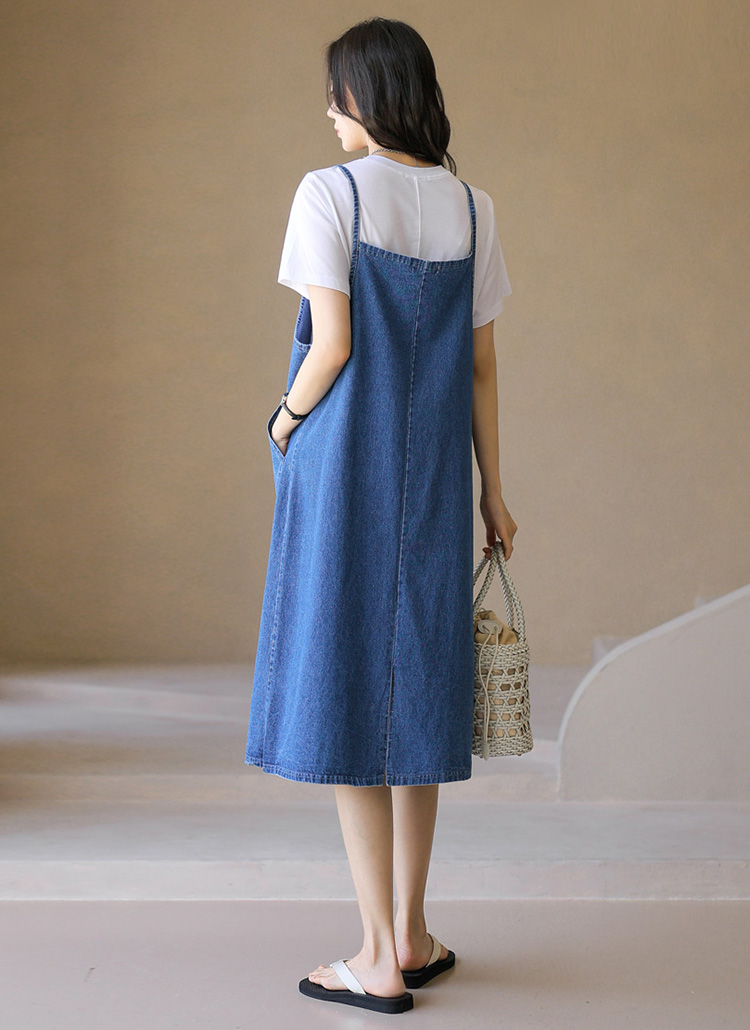 탄탄한 데님 소재로 캐주얼하면서도 안정감 있게 착용되는 원피스에요