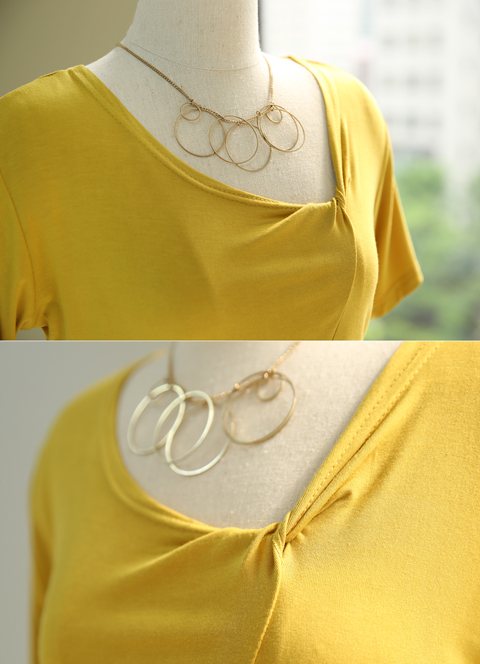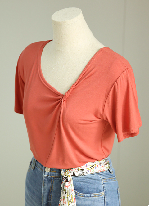 네크라인 한쪽 부분 꼬임 디테일로 디자인 포인트를 드린 반팔 티셔츠★