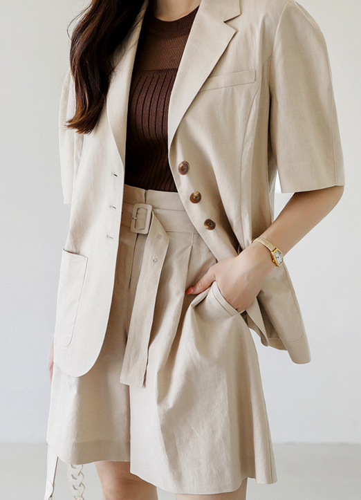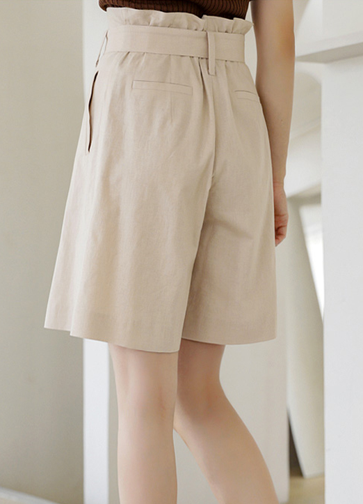 [♡ Designed by Styleonme ♡Crafted with hand-picked premium linen blended fabric, this classic timeless bermuda shorts is high waisted, belted and flares out to create slender thighs. Best matched with our Premium Linen Neutral Beige Retro Half Blazer.]